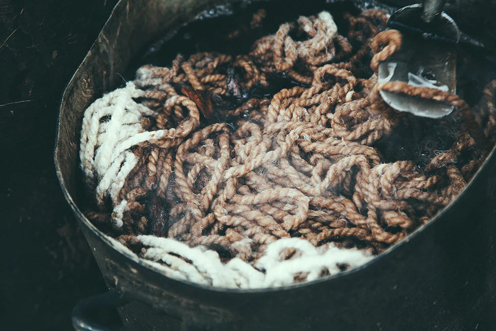 Luego viene el proceso de teñido. Nuestros artesanos suelen usar pigmentos naturales extraídos de plantas, flores, verduras y humo, aunque en ocasiones agregan anilinas (tintes minerales) para lograr colores más intensos. Los tonos obtenidos con tintes naturales nunca son completamente uniformes.