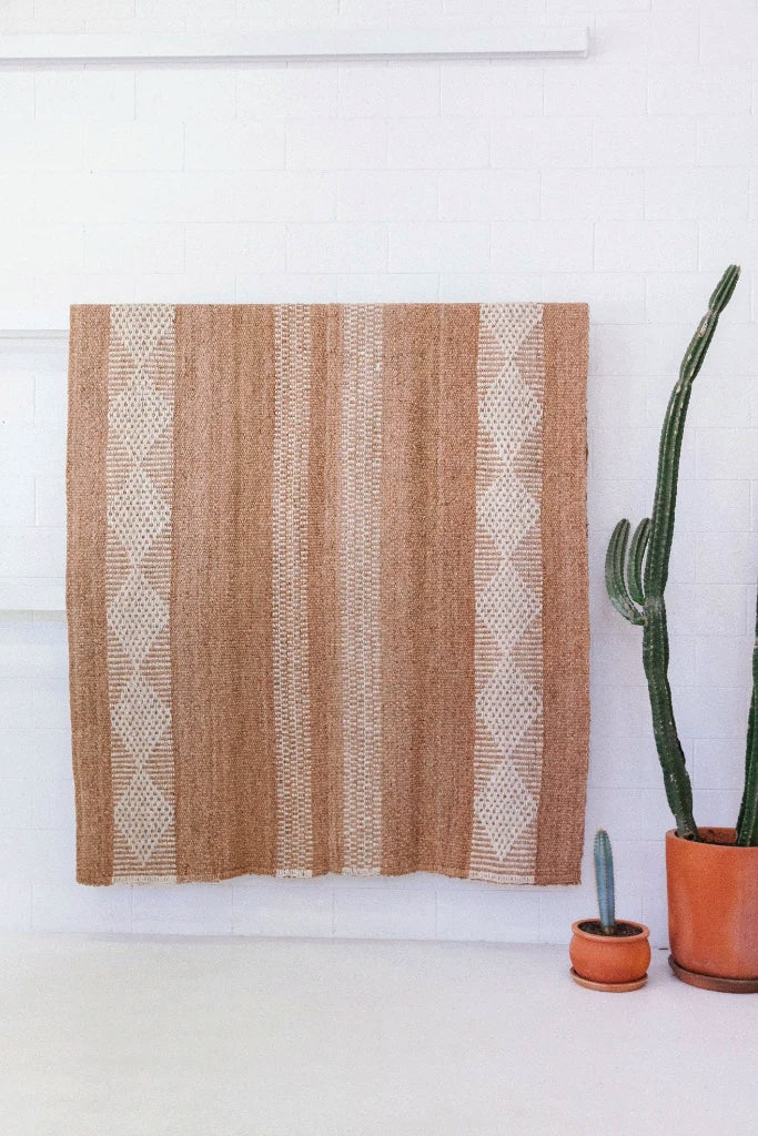 Todas las alfombras de Pampa están tejidas con fibras naturales finas y de alta calidad, y cada paso del proceso se realiza a mano, lo que hace que cada pieza sea única.Nuestras alfombras se tejen siguiendo técnicas tradicionales ancestrales, donde los telares suelen tener el ancho aproximado de los brazos extendidos del tejedor, dependiendo de esa medida, la alfombra puede tener una o más uniones discretas donde se ensamblan los paños. Estas uniones son un detalle bello y característico del trabajo hecho a mano.