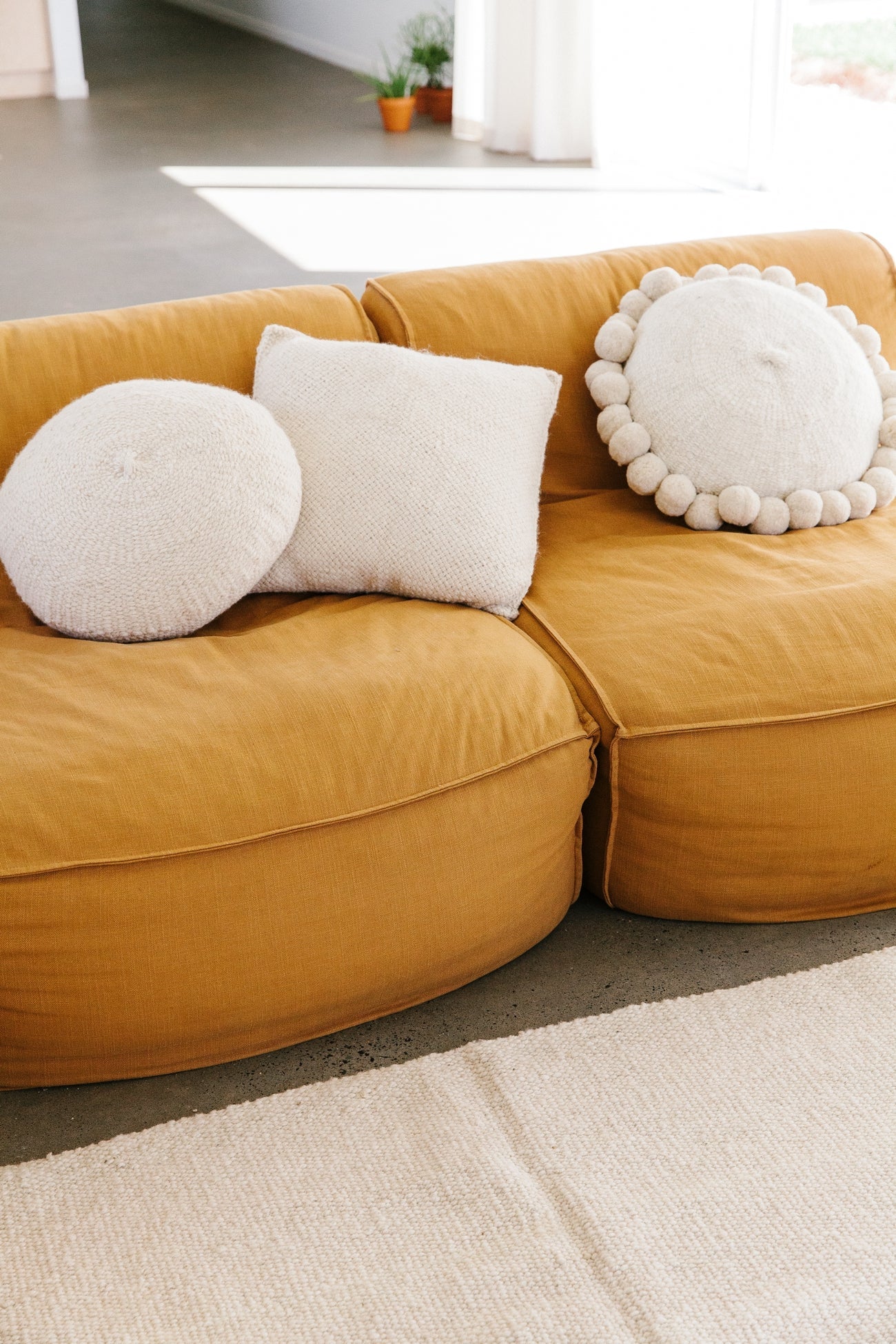 Todos los almohadones Pampa están tejidos con pura lana de oveja, super suave y de la mejor calidad. Cada etapa del proceso es artesanal, lo que hace que cada pieza sea verdaderamente única. Al sentir la calidez de las fibras naturales, sentís la tierra: una experiencia táctil y consciente que conecta con lo esencial. Trabajamos en ediciones limitadas, con pequeños lotes producidos por nuestras tejedoras, con las cuales trabajamos hace más de 10 años.