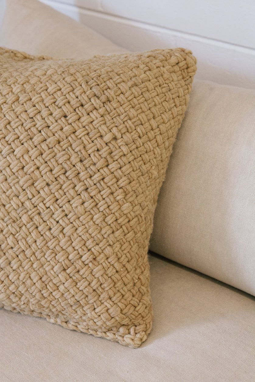 Todos los almohadones Pampa están tejidos con pura lana de oveja, super suave y de la mejor calidad. Cada etapa del proceso es artesanal, lo que hace que cada pieza sea verdaderamente única. Al sentir la calidez de las fibras naturales, sentís la tierra: una experiencia táctil y consciente que conecta con lo esencial. Trabajamos en ediciones limitadas, con pequeños lotes producidos por nuestras tejedoras, con las cuales trabajamos hace más de 10 años.