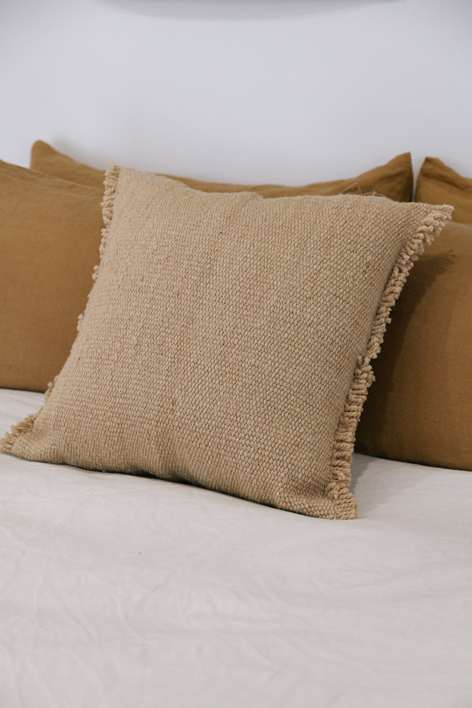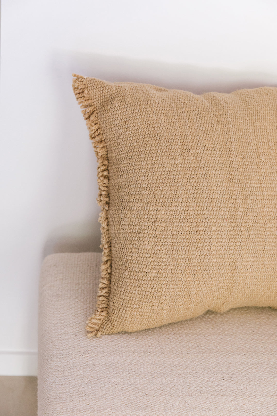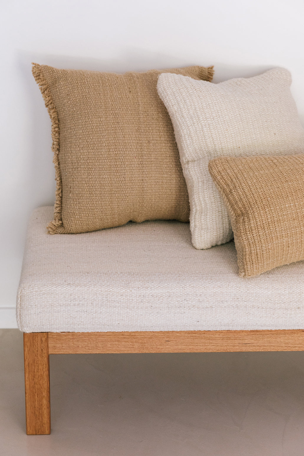 Todos los almohadones Pampa están tejidos con pura lana de oveja, super suave y de la mejor calidad. Cada etapa del proceso es artesanal, lo que hace que cada pieza sea verdaderamente única. Al sentir la calidez de las fibras naturales, sentís la tierra: una experiencia táctil y consciente que conecta con lo esencial. Trabajamos en ediciones limitadas, con pequeños lotes producidos por nuestras tejedoras, con las cuales trabajamos hace más de 10 años.