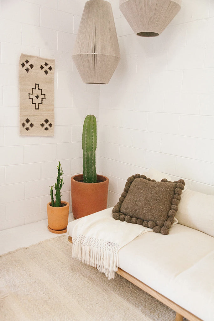 Todos los almohadones Pampa están tejidos con pura lana de oveja, super suave y de la mejor calidad. Cada etapa del proceso es artesanal, lo que hace que cada pieza sea verdaderamente única. Al sentir la calidez de las fibras naturales, sentís la tierra: una experiencia táctil y consciente que conecta con lo esencial. Trabajamos en ediciones limitadas, con pequeños lotes producidos por nuestras tejedoras, con las cuales trabajamos hace más de 10 años.