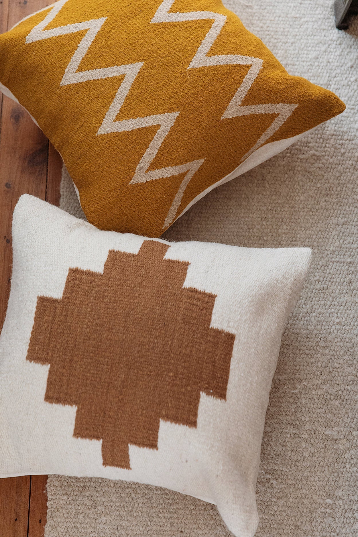 Todos los almohadones Pampa están tejidos con pura lana de oveja, super suave y de la mejor calidad. Cada etapa del proceso es artesanal, lo que hace que cada pieza sea verdaderamente única. Al sentir la calidez de las fibras naturales, sentís la tierra: una experiencia táctil y consciente que conecta con lo esencial. Trabajamos en ediciones limitadas, con pequeños lotes producidos por nuestras tejedoras, con las cuales trabajamos hace más de 10 años.
