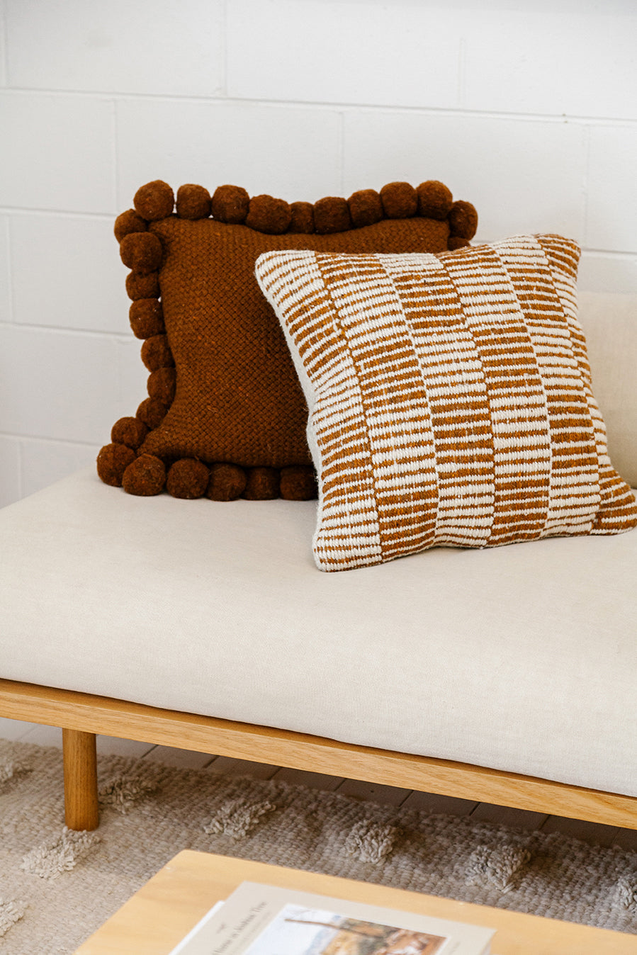 Nuestros almohadones están tejidos con fibras naturales y están hechos para durar, sin el uso de materiales sintéticos.