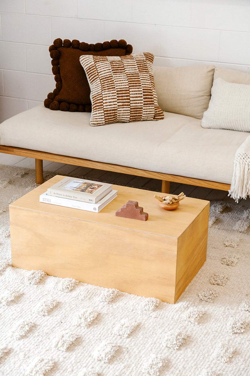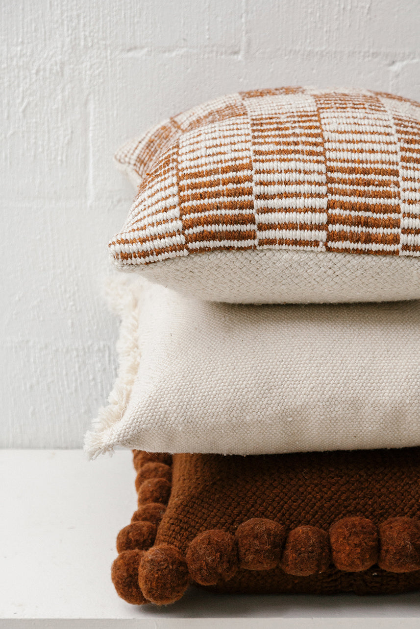 Todos los almohadones Pampa están tejidos con pura lana de oveja, super suave y de la mejor calidad. Cada etapa del proceso es artesanal, lo que hace que cada pieza sea verdaderamente única. Al sentir la calidez de las fibras naturales, sentís la tierra: una experiencia táctil y consciente que conecta con lo esencial. Trabajamos en ediciones limitadas, con pequeños lotes producidos por nuestras tejedoras, con las cuales trabajamos hace más de 10 años.