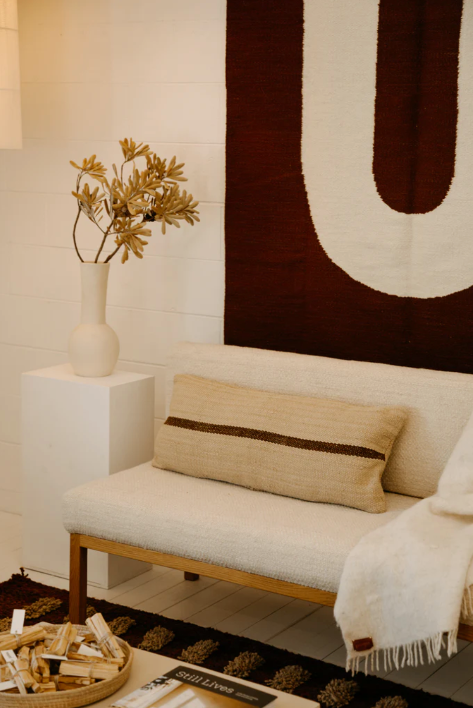 Todos los almohadones Pampa están tejidos con pura lana de oveja, super suave y de la mejor calidad. Cada etapa del proceso es artesanal, lo que hace que cada pieza sea verdaderamente única. Al sentir la calidez de las fibras naturales, sentís la tierra: una experiencia táctil y consciente que conecta con lo esencial. Trabajamos en ediciones limitadas, con pequeños lotes producidos por nuestras tejedoras, con las cuales trabajamos hace más de 10 años.