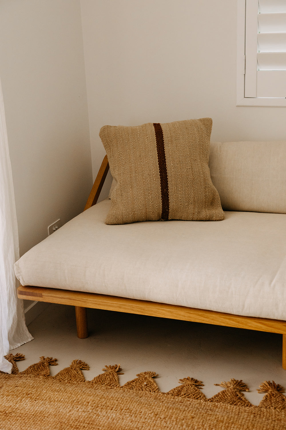 Nuestros almohadones están tejidos con fibras naturales y están hechos para durar, sin el uso de materiales sintéticos.