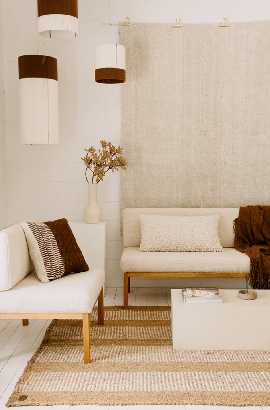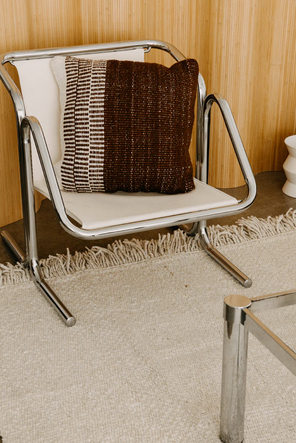 Todos los almohadones Pampa están tejidos con pura lana de oveja, super suave y de la mejor calidad. Cada etapa del proceso es artesanal, lo que hace que cada pieza sea verdaderamente única. Al sentir la calidez de las fibras naturales, sentís la tierra: una experiencia táctil y consciente que conecta con lo esencial. Trabajamos en ediciones limitadas, con pequeños lotes producidos por nuestras tejedoras, con las cuales trabajamos hace más de 10 años.