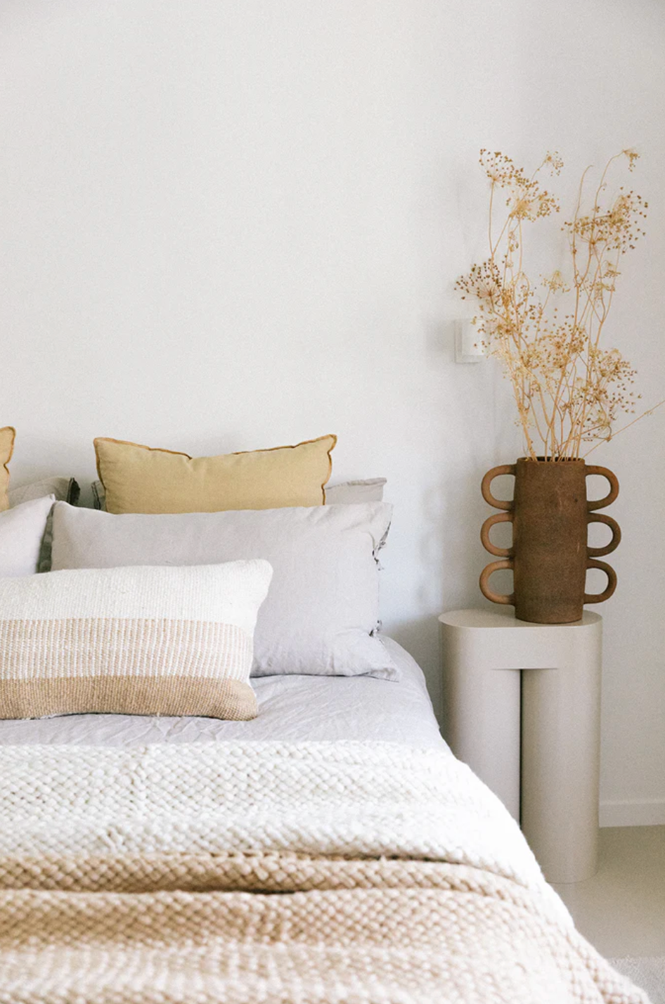 Todos los almohadones Pampa están tejidos con pura lana de oveja, super suave y de la mejor calidad. Cada etapa del proceso es artesanal, lo que hace que cada pieza sea verdaderamente única. Al sentir la calidez de las fibras naturales, sentís la tierra: una experiencia táctil y consciente que conecta con lo esencial. Trabajamos en ediciones limitadas, con pequeños lotes producidos por nuestras tejedoras, con las cuales trabajamos hace más de 10 años.