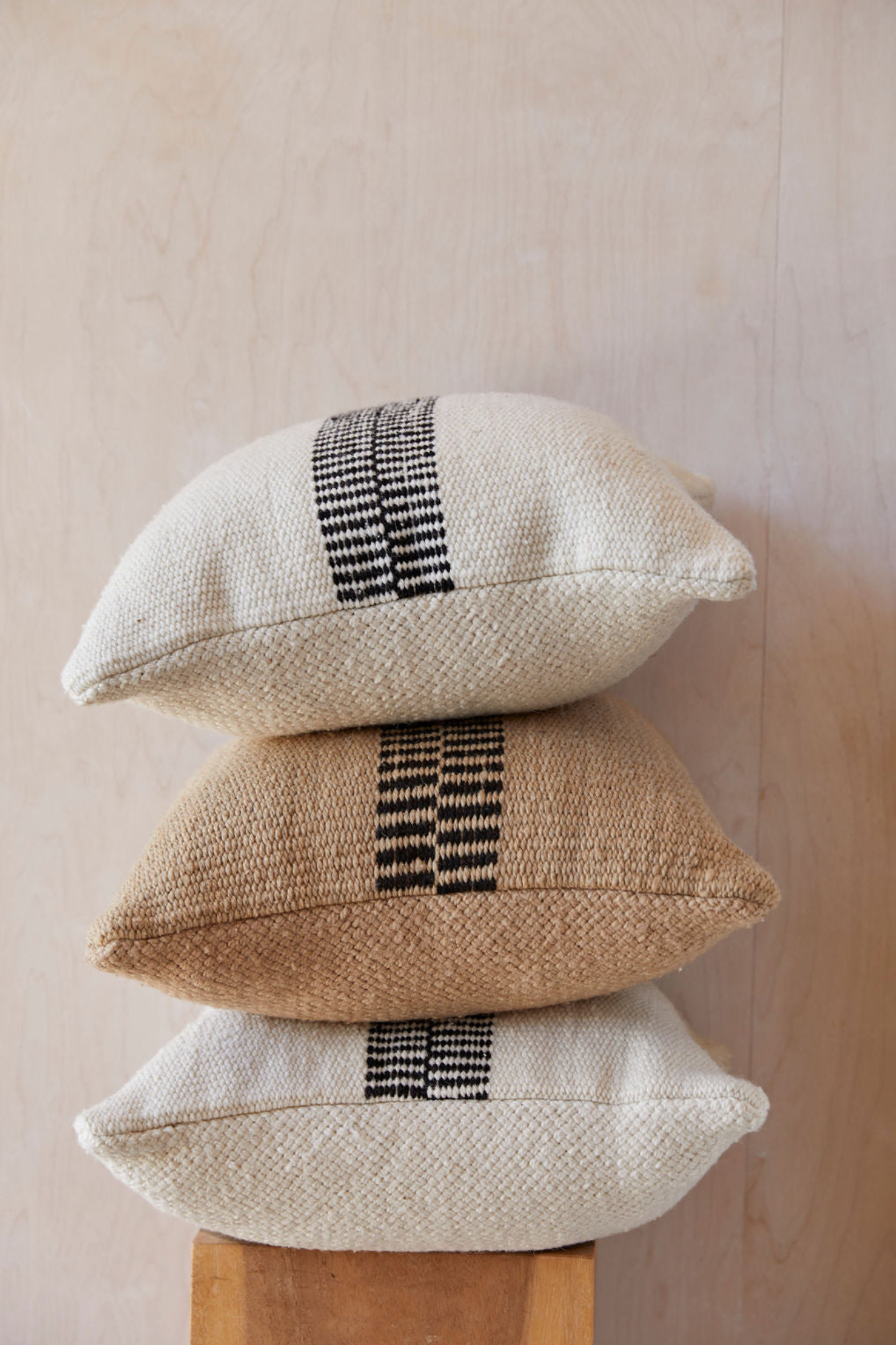 Todos los almohadones Pampa están tejidos con pura lana de oveja, super suave y de la mejor calidad. Cada etapa del proceso es artesanal, lo que hace que cada pieza sea verdaderamente única. Al sentir la calidez de las fibras naturales, sentís la tierra: una experiencia táctil y consciente que conecta con lo esencial. Trabajamos en ediciones limitadas, con pequeños lotes producidos por nuestras tejedoras, con las cuales trabajamos hace más de 10 años.