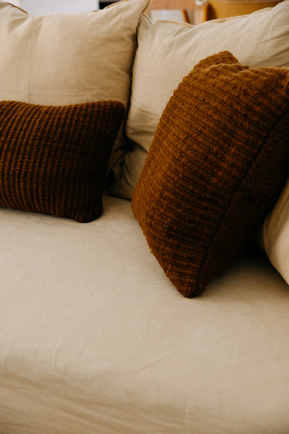 Nuestros almohadones están tejidos con fibras naturales y están hechos para durar, sin el uso de materiales sintéticos.