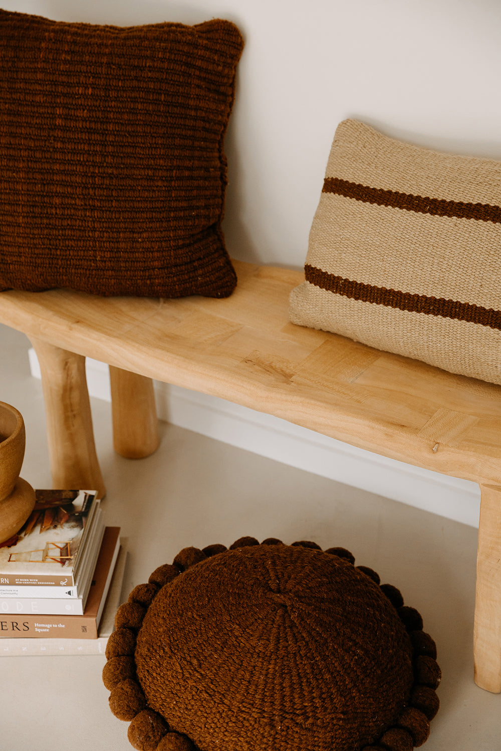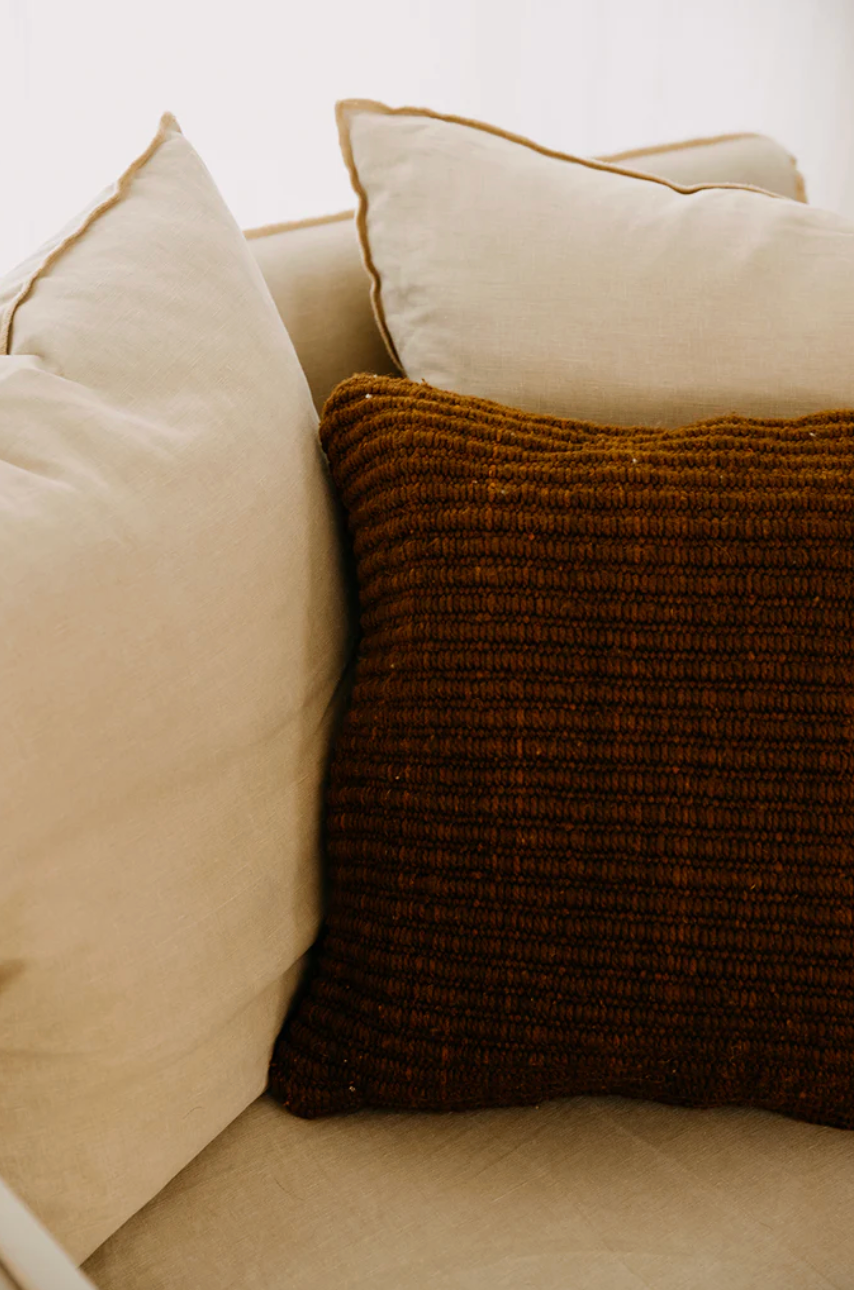 Todos los almohadones Pampa están tejidos con pura lana de oveja, super suave y de la mejor calidad. Cada etapa del proceso es artesanal, lo que hace que cada pieza sea verdaderamente única. Al sentir la calidez de las fibras naturales, sentís la tierra: una experiencia táctil y consciente que conecta con lo esencial. Trabajamos en ediciones limitadas, con pequeños lotes producidos por nuestras tejedoras, con las cuales trabajamos hace más de 10 años.