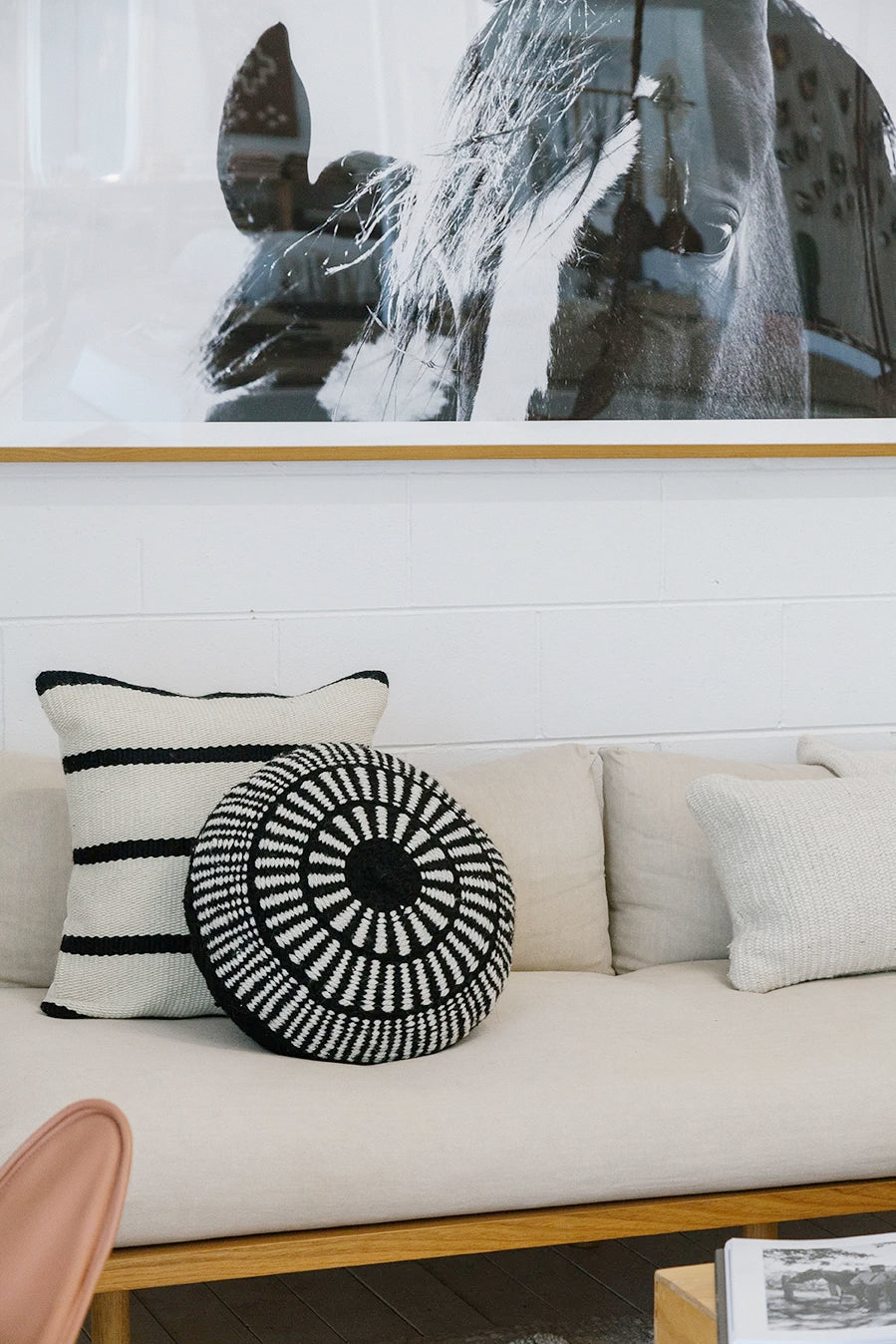 Todos los almohadones Pampa están tejidos con pura lana de oveja, super suave y de la mejor calidad. Cada etapa del proceso es artesanal, lo que hace que cada pieza sea verdaderamente única. Al sentir la calidez de las fibras naturales, sentís la tierra: una experiencia táctil y consciente que conecta con lo esencial. Trabajamos en ediciones limitadas, con pequeños lotes producidos por nuestras tejedoras, con las cuales trabajamos hace más de 10 años.