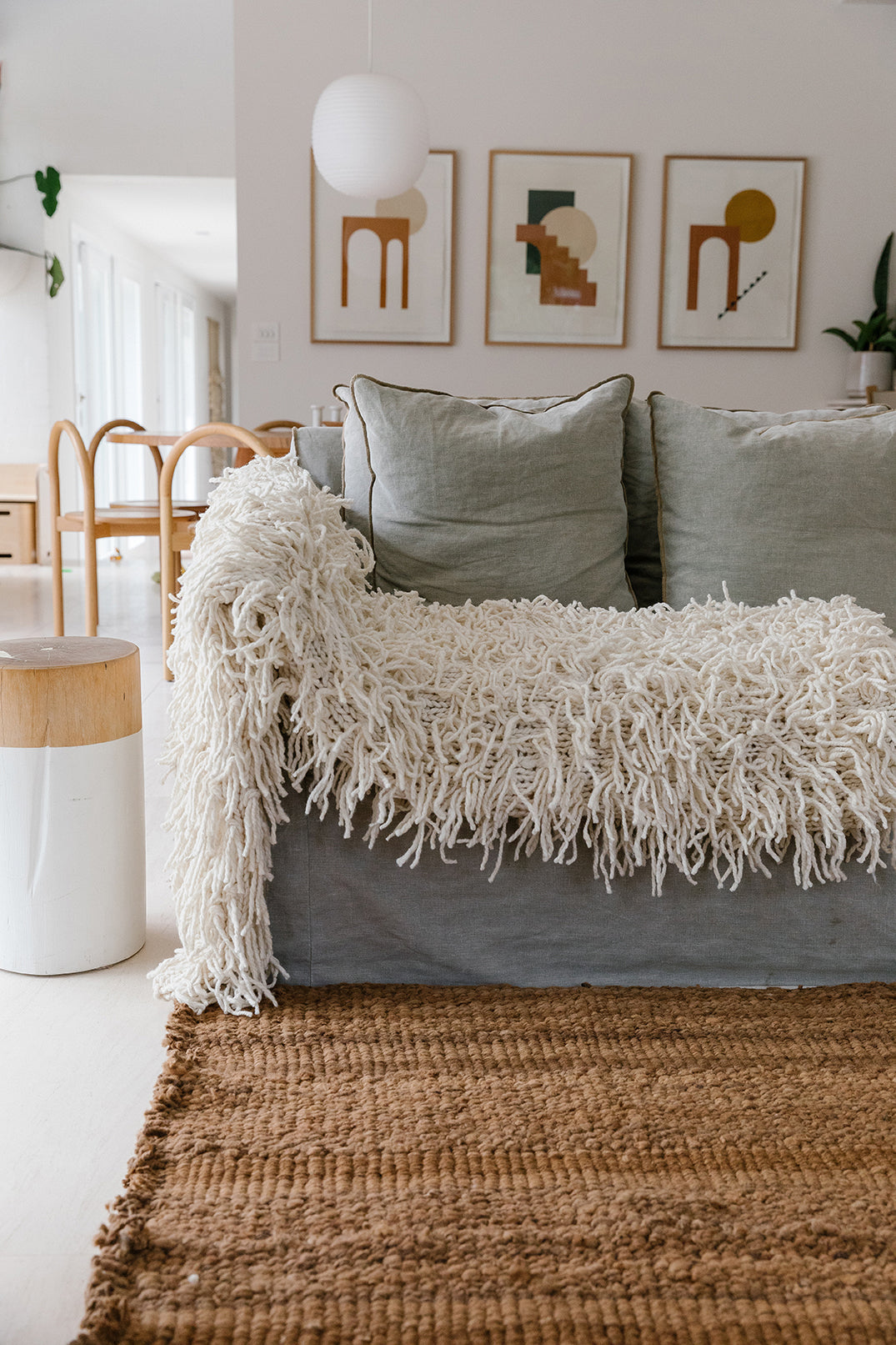 • Usá una base antideslizante para mantener la alfombra extendida, evitar deslizamientos, proteger el piso y prevenir que la lana se aplaste con el tiempo. Recomendamos usar una base antideslizante sobre cualquier tipo de superficie.
