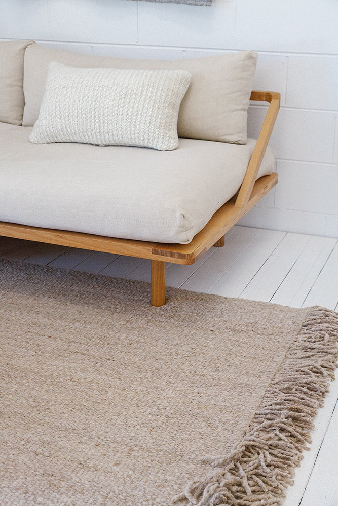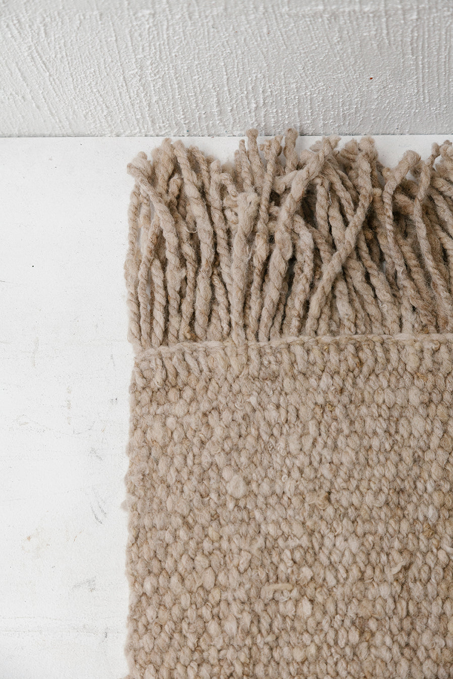 Todas las alfombras de Pampa están tejidas con fibras naturales finas y de alta calidad, y cada paso del proceso se realiza a mano, lo que hace que cada pieza sea única.Nuestras alfombras se tejen siguiendo técnicas tradicionales ancestrales, donde los telares suelen tener el ancho aproximado de los brazos extendidos del tejedor, dependiendo de esa medida, la alfombra puede tener una o más uniones discretas donde se ensamblan los paños. Estas uniones son un detalle bello y característico del trabajo hecho a mano.