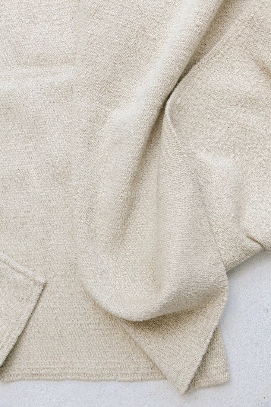 Parte de nuestra colección de alfombras lisas, tejida con lana de oveja, delgada, super resistente y bien suave. Lujosa al tacto, aporta confort y elegancia a cualquier espacio. Al ser 100% lana virgen —sin teñir— esta alfombra resalta la belleza de la fibra en su estado puro y su textura natural.