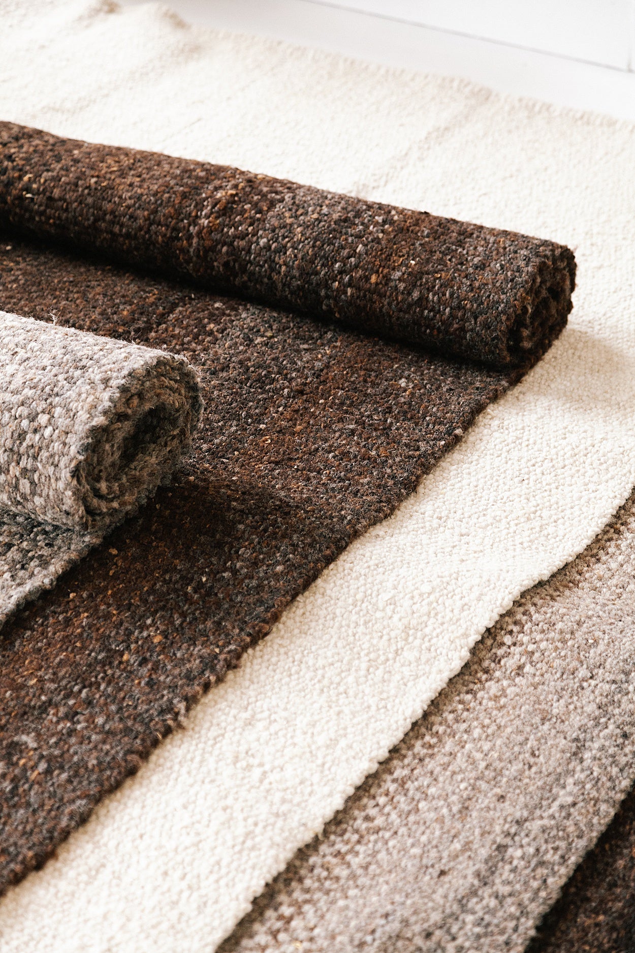 Parte de nuestra colección de alfombras lisas, tejida con lana de oveja, bien mullida suave, lujosa al tacto, aporta confort y elegancia a cualquier espacio. Al ser 100% lana virgen —sin teñir— esta alfombra resalta la belleza de la fibra en su estado puro y su textura natural.