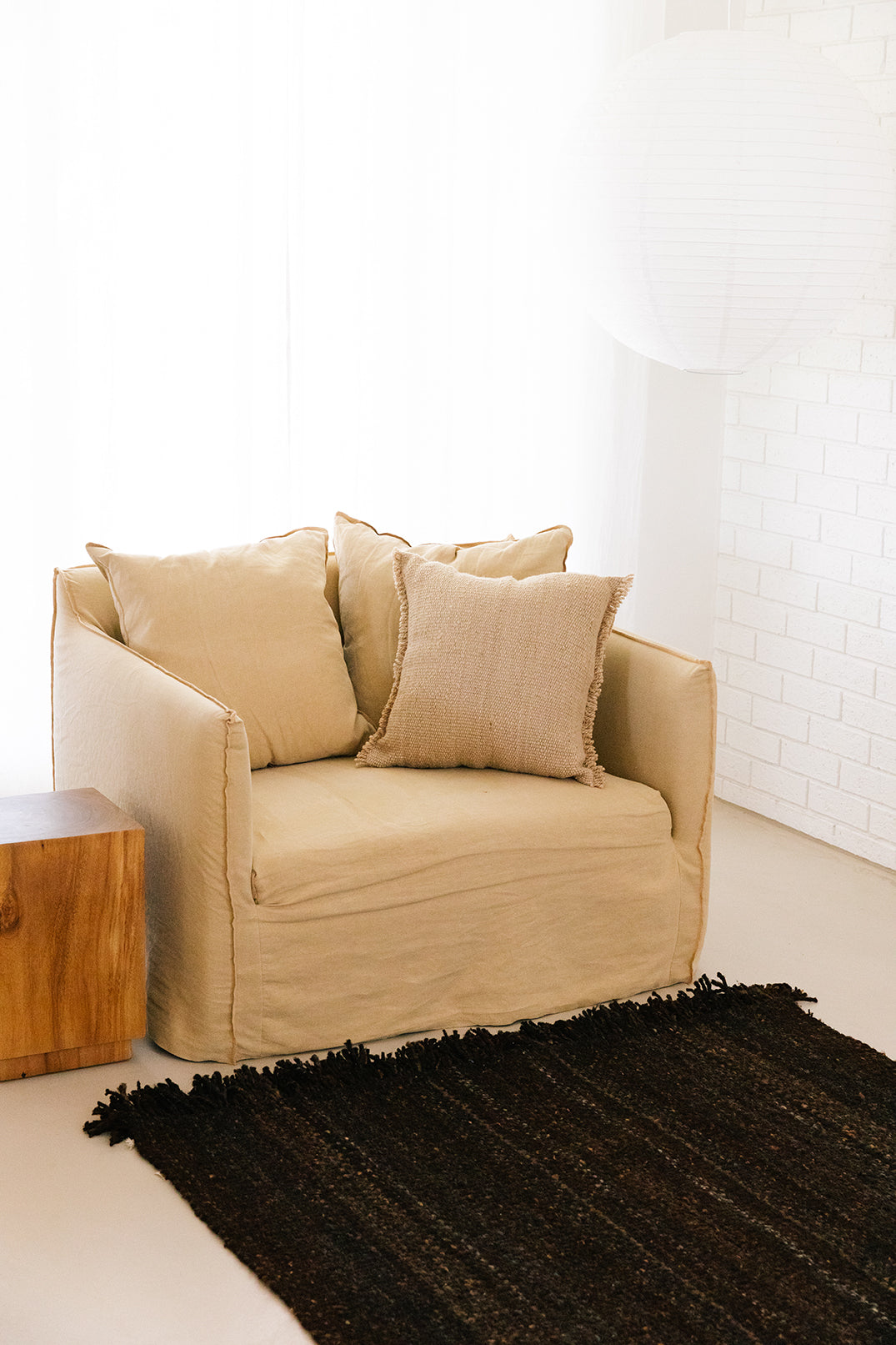 Todas las alfombras de Pampa están tejidas con fibras naturales finas y de alta calidad, y cada paso del proceso se realiza a mano, lo que hace que cada pieza sea única.Nuestras alfombras se tejen siguiendo técnicas tradicionales ancestrales, donde los telares suelen tener el ancho aproximado de los brazos extendidos del tejedor, dependiendo de esa medida, la alfombra puede tener una o más uniones discretas donde se ensamblan los paños. Estas uniones son un detalle bello y característico del trabajo hecho a mano.
