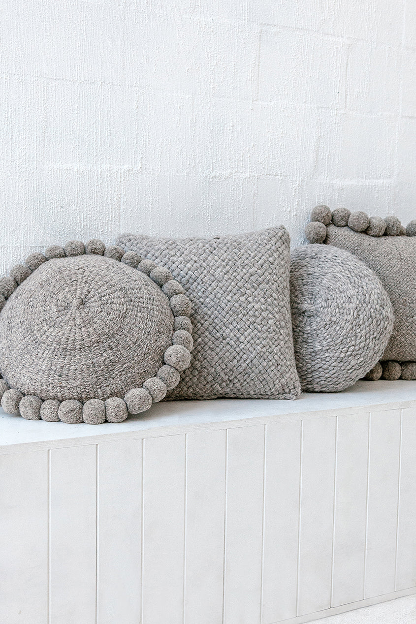 Todos los almohadones Pampa están tejidos con pura lana de oveja, super suave y de la mejor calidad. Cada etapa del proceso es artesanal, lo que hace que cada pieza sea verdaderamente única. Al sentir la calidez de las fibras naturales, sentís la tierra: una experiencia táctil y consciente que conecta con lo esencial. Trabajamos en ediciones limitadas, con pequeños lotes producidos por nuestras tejedoras, con las cuales trabajamos hace más de 10 años.