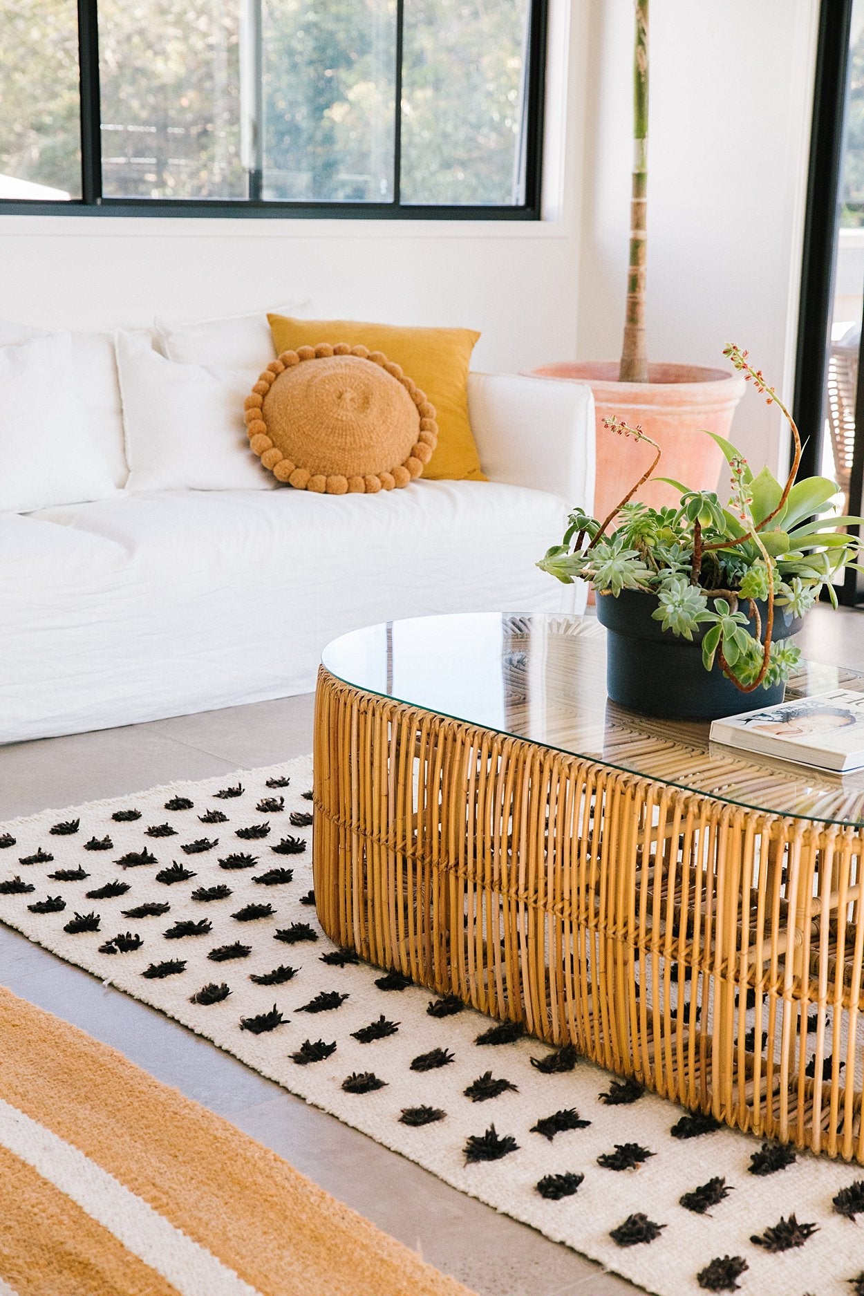 Parte de nuestra colección de alfombras pelo cortado, tejida con lana de oveja, bien mullida suave, lujosa al tacto, aporta extra confort gracias a sus pompones, una suavidad sin igual. Al ser teñida 100% a mano, se caracterizan por sus variaciones en el perfil de vetas, colores y diseños uniformes reflejan la hermosa naturaleza de su proceso artesanal y son lo que hacen que cada alfombra Pampa sea verdaderamente única.