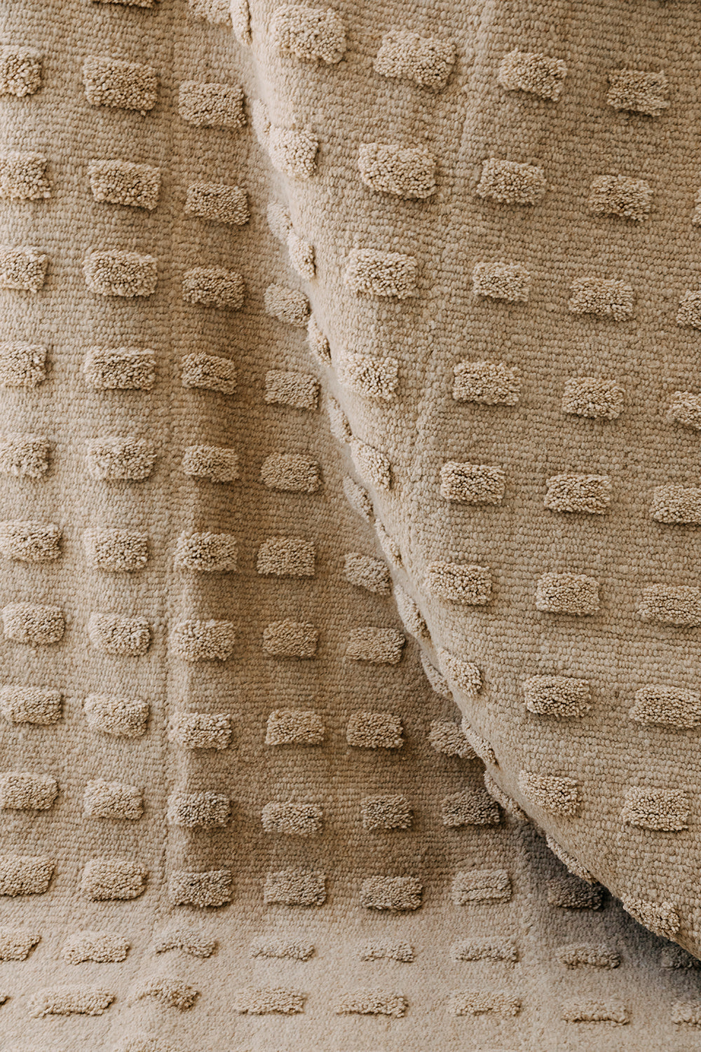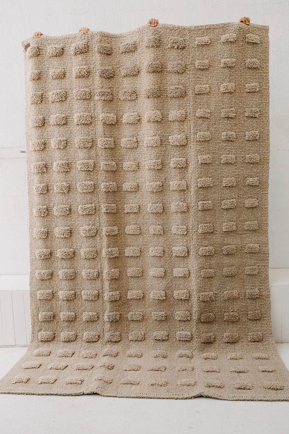 Parte de nuestra colección de alfombras pelo cortado, tejida con lana de oveja, bien mullida suave, lujosa al tacto, aporta extra confort gracias a sus pompones, una suavidad sin igual. Al ser teñida 100% a mano, se caracterizan por sus variaciones en el perfil de vetas, colores y diseños uniformes reflejan la hermosa naturaleza de su proceso artesanal y son lo que hacen que cada alfombra Pampa sea verdaderamente única.