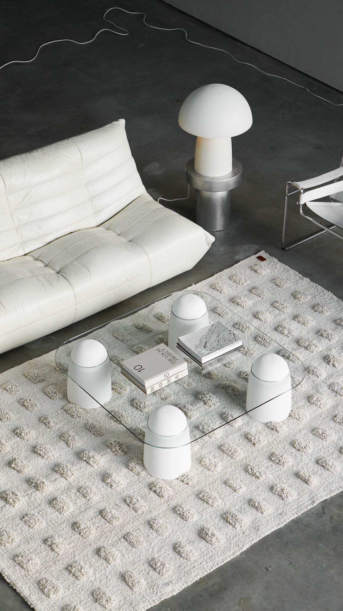 La colección pelo cortado está tejida con lana de trama gruesa y pompones que crean un efecto en capas, aportando profundidad y dimensión a cada alfombra. Estas piezas atraen por la textura y suavidad. Son una pieza de lujo, con su trama pesada, invitan al tacto y a la contemplación. Las alfombras Pampa arraigan, sostienen y definen los espacios, y se adaptan naturalmente a diferentes estilos.
