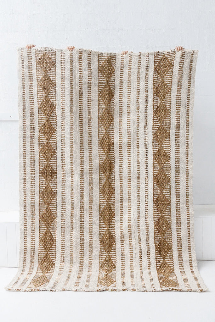 Todas las alfombras de Pampa están tejidas con fibras naturales finas y de alta calidad, y cada paso del proceso se realiza a mano, lo que hace que cada pieza sea única.Nuestras alfombras se tejen siguiendo técnicas tradicionales ancestrales, donde los telares suelen tener el ancho aproximado de los brazos extendidos del tejedor, dependiendo de esa medida, la alfombra puede tener una o más uniones discretas donde se ensamblan los paños. Estas uniones son un detalle bello y característico del trabajo hecho a mano.
