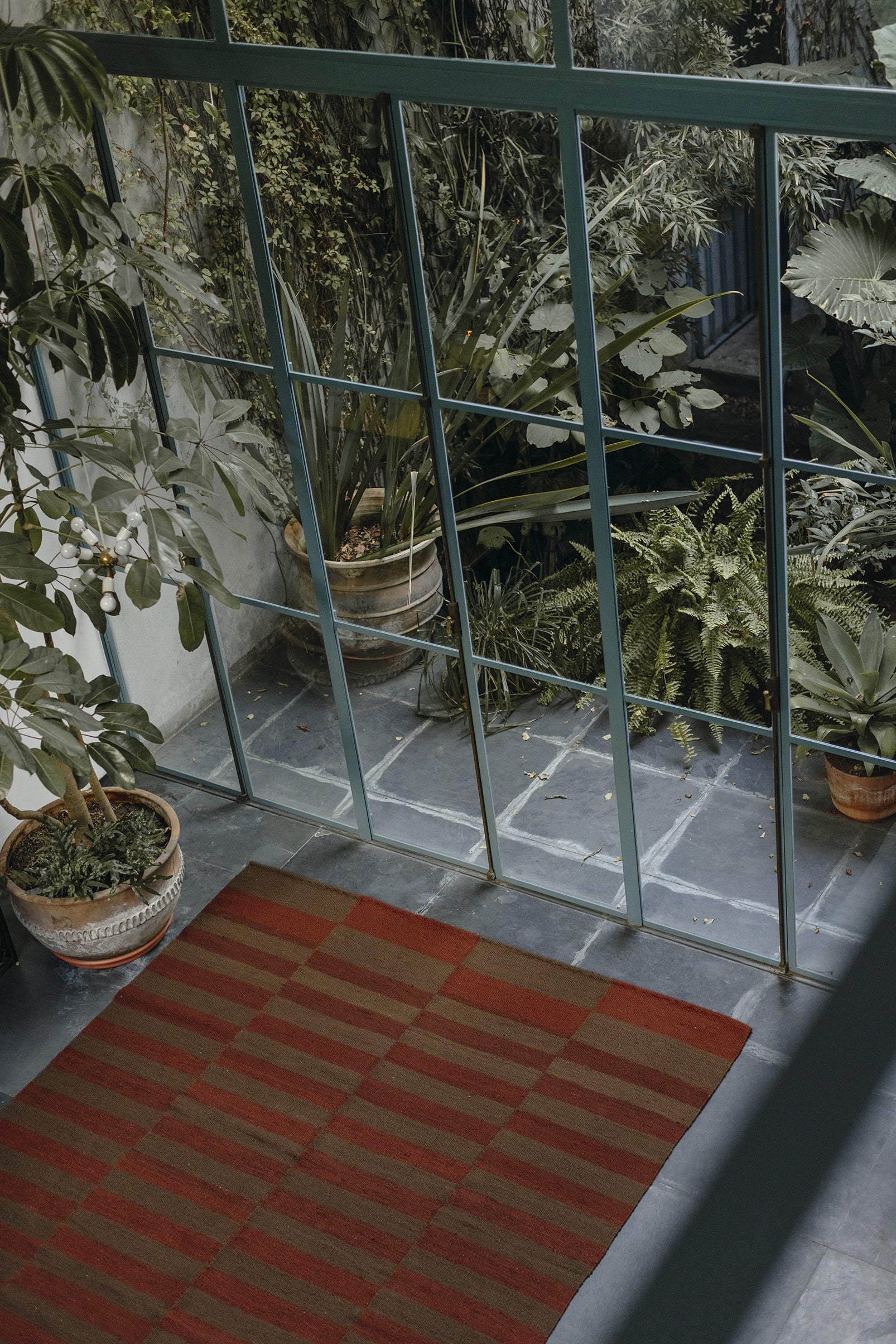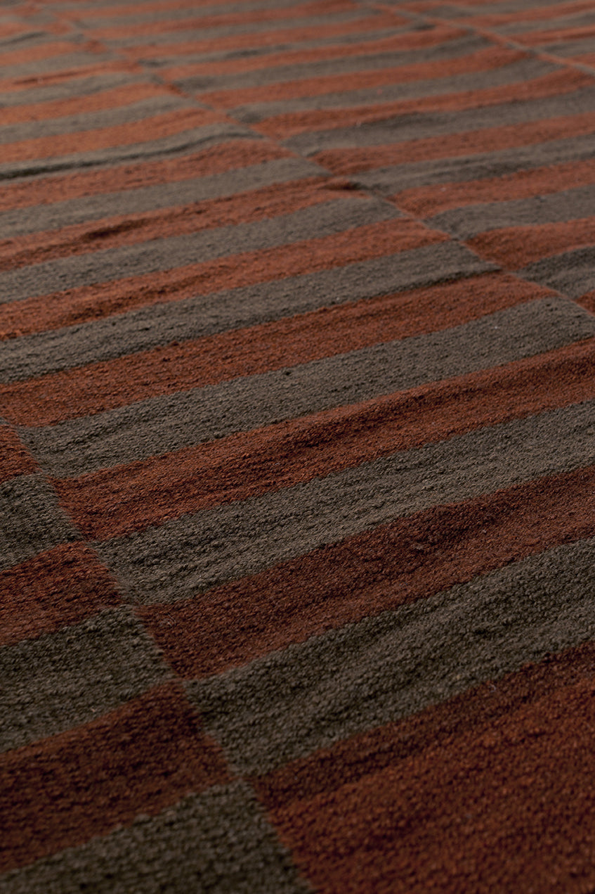 Parte de nuestra colección de alfombras Forma, tejida con lana de oveja, bien mullida suave, lujosa al tacto, creada en colaboración con el estudio de interiorismo Australiano, Triibe. Presenta patrones geométricos de bordes suaves, donde rectángulos imperfectos se entrelazan en una composición tejida de tonos terrosos claros y profundos. Al ser teñida 100% a mano, se caracterizan por sus variaciones en el perfil de vetas, colores y diseños uniformes reflejan la hermosa naturaleza de su proceso artesanal y son lo que hacen que cada alfombra Pampa sea verdaderamente única.