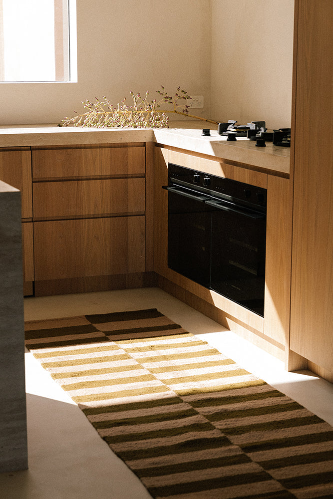 The FORMA Collection, named after the Spanish word for "form," features geometric patterns with soft edges and imperfect squares and rectangles. Woven in an interplay of light and deep earthy tones, these rugs add a touch of elegance and warmth to any room. The wool is carefully hand-dyed by artisan weavers in Argentina before being woven into shape, using time-honoured, traditional craftsmanship. Each rug is a labour of love, embodying the dedication and skill of the artisans.