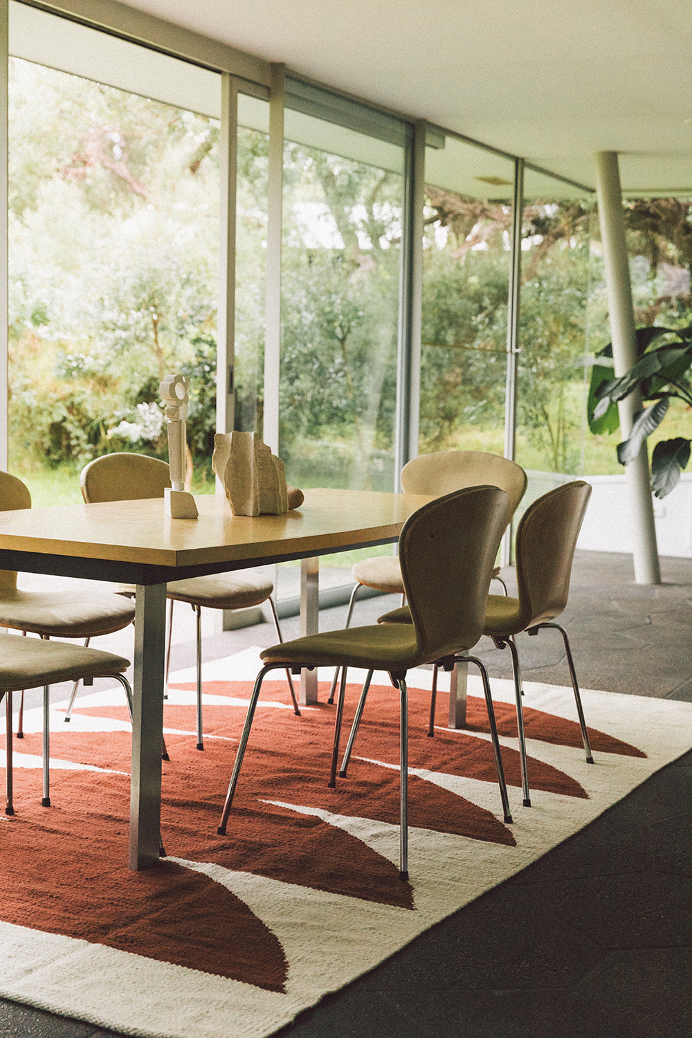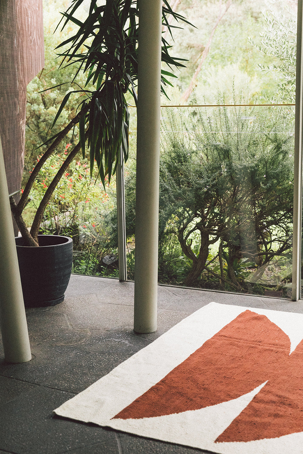 La colección Haus está disponible en una variedad de colores de la paleta de trama fina y presenta patrones modernos super geométricos invitando a un mundo donde el arte y el tejido se encuentran, y la sinergia entre las pinturas del artista y la ancestral técnica de las tejedoras de Pampa se convierte en una cautivadora exploración de intercambio cultural y diálogo creativo. Cada alfombra lleva las iniciales bordadas a mano por la tejedora, en color rojo como detalle final. Este detalle único resalta la naturaleza artesanal de cada pieza y celebra la unión creativa de dos artistas trabajando juntos. Las alfombras Pampa arraigan, sostienen y definen los espacios, y se adaptan naturalmente a diferentes estilos.