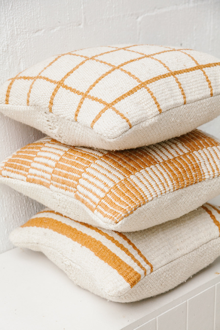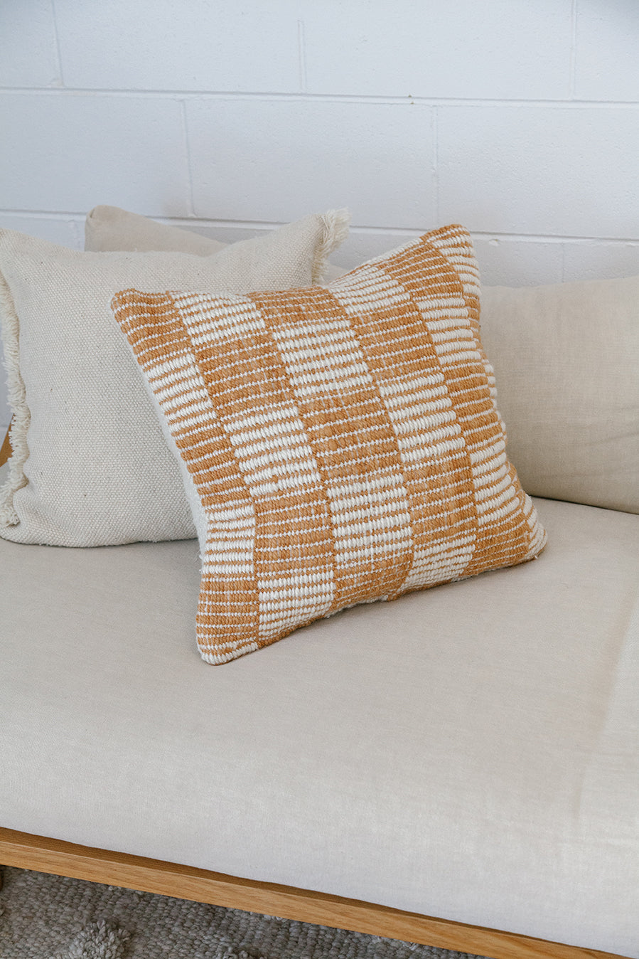 Todos los almohadones Pampa están tejidos con pura lana de oveja, super suave y de la mejor calidad. Cada etapa del proceso es artesanal, lo que hace que cada pieza sea verdaderamente única. Al sentir la calidez de las fibras naturales, sentís la tierra: una experiencia táctil y consciente que conecta con lo esencial. Trabajamos en ediciones limitadas, con pequeños lotes producidos por nuestras tejedoras, con las cuales trabajamos hace más de 10 años.