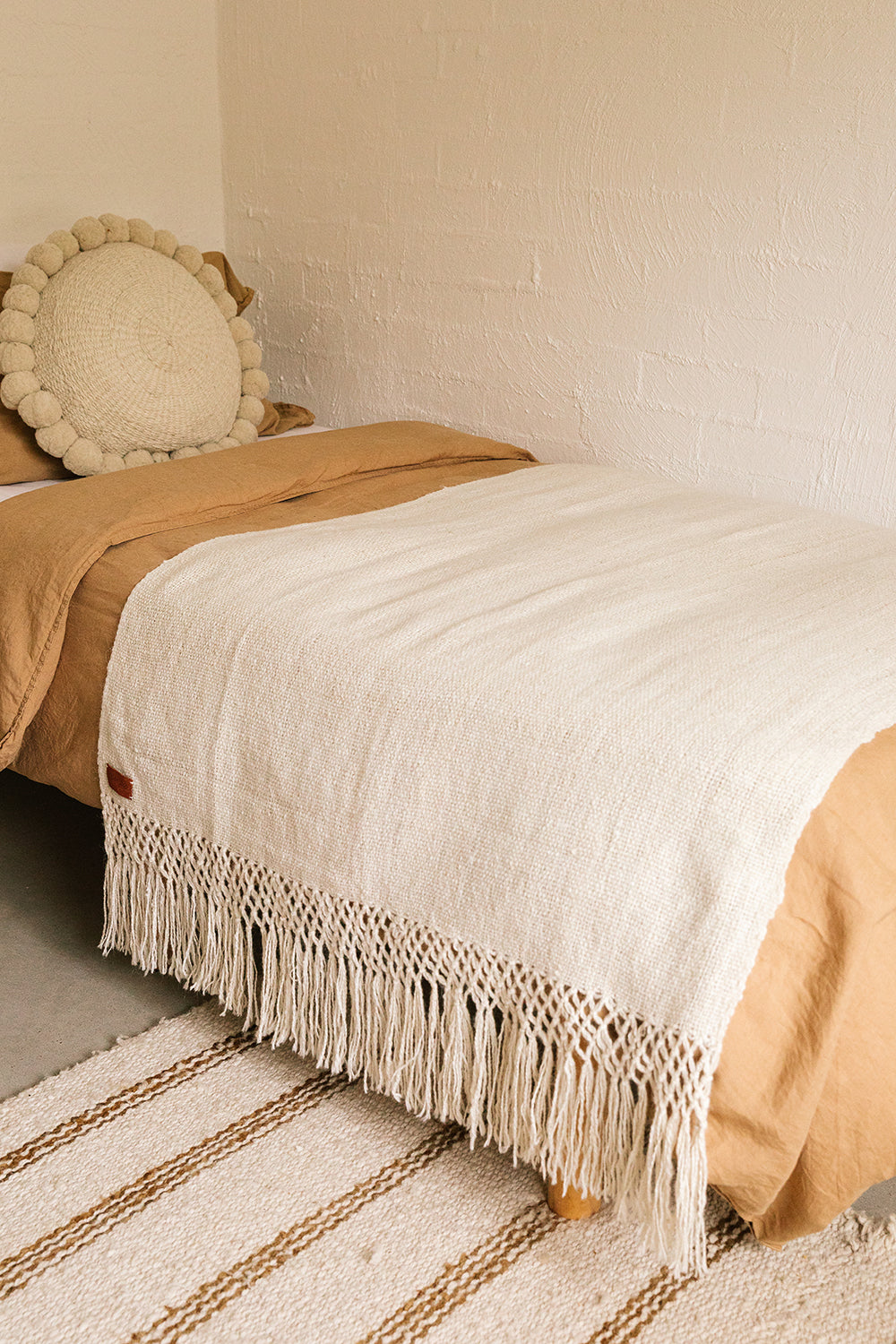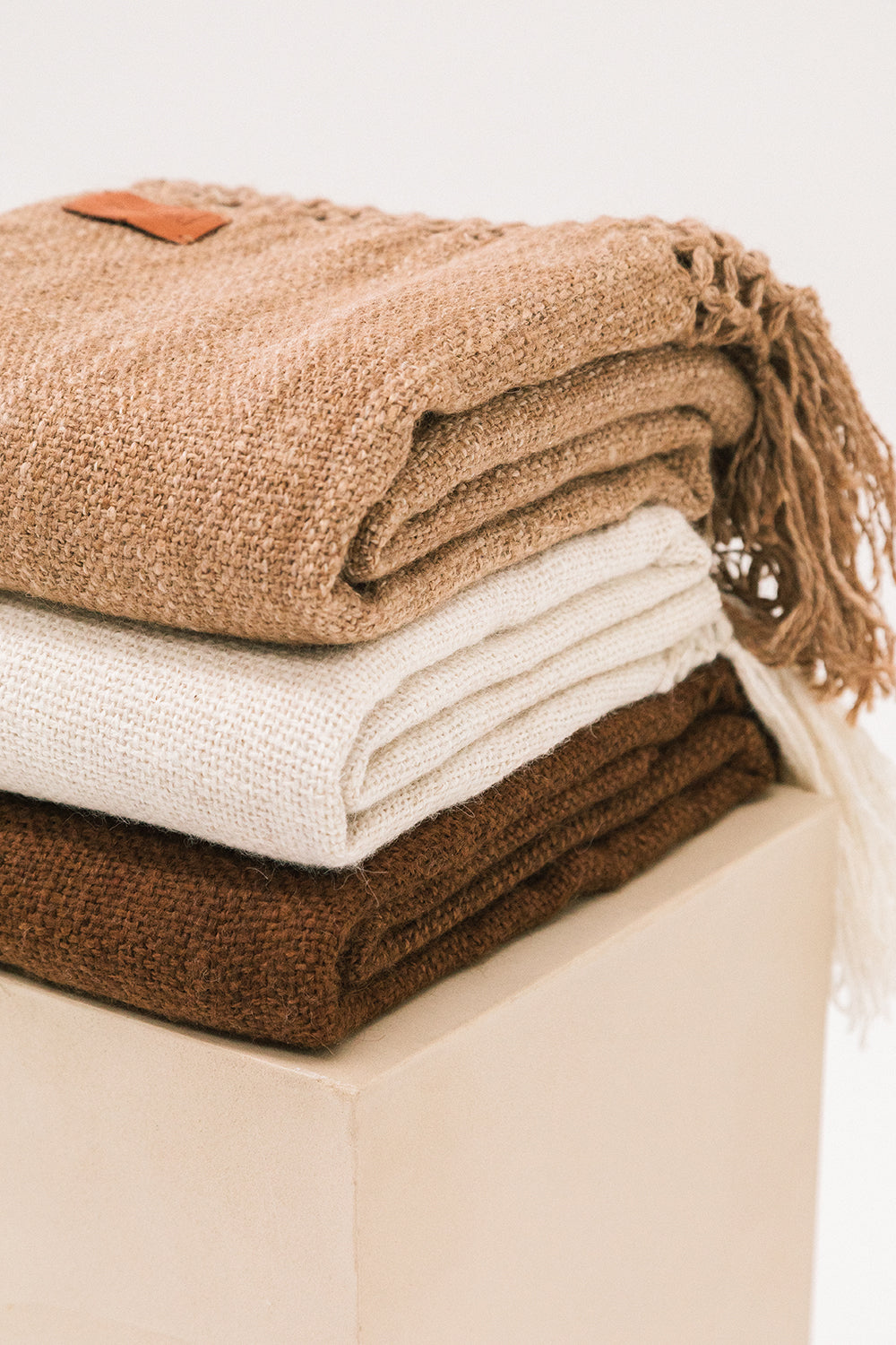 Nuestras mantas están tejidas con fibras naturales y están hechas para durar, sin el uso de materiales sintéticos.