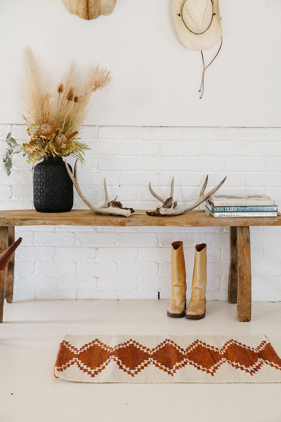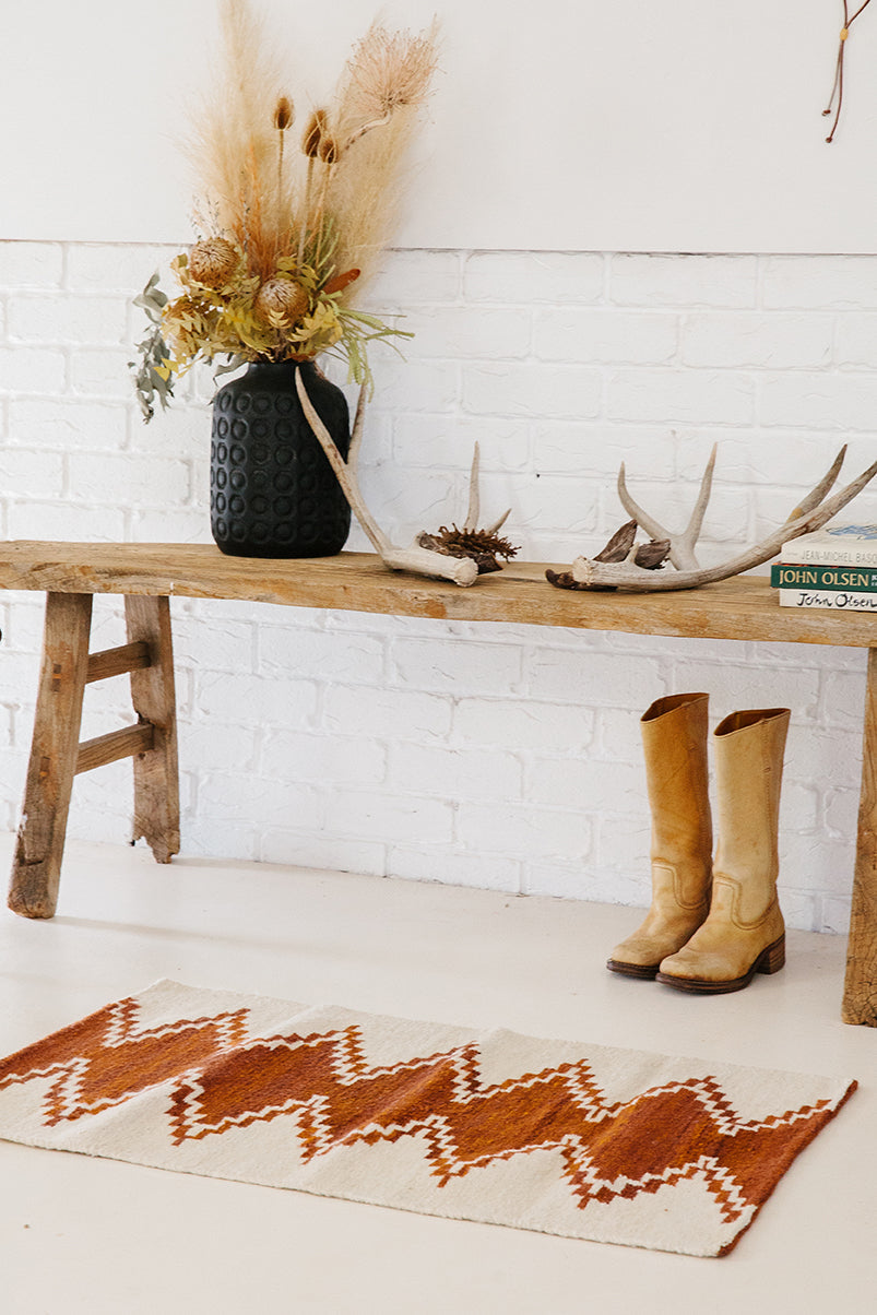 Parte de nuestra colección de alfombras Étnicas, tejida con lana de oveja, delgada, super resistente y bien suave. Lujosa al tacto, estos diseños capturan la esencia de Pampa, donde la herencia artesanal Latinoamericana es una de nuestras grandes inspiraciones. Ideales para usar junto a la cama, en espacios pequeños o como tapices decorativos. Al ser teñida 100% a mano, se caracterizan por sus variaciones en el perfil de vetas, colores y diseños uniformes reflejan la hermosa naturaleza de su proceso artesanal y son lo que hacen que cada alfombra Pampa sea verdaderamente única.