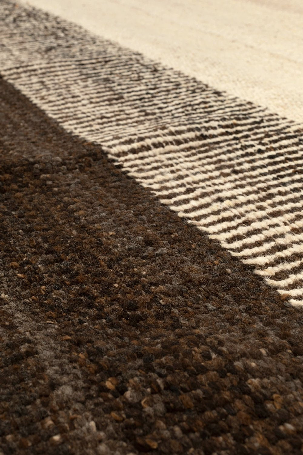Parte de nuestra colección de alfombras lineares, tejida con lana de oveja, bien mullida suave, lujosa al tacto, son diseños minimalistas, contemporáneos y atemporales, aportan profundidad y carácter a los espacios simples. Al ser 100% lana virgen —sin teñir— esta alfombra resalta la belleza de la fibra en su estado puro y su textura natural.