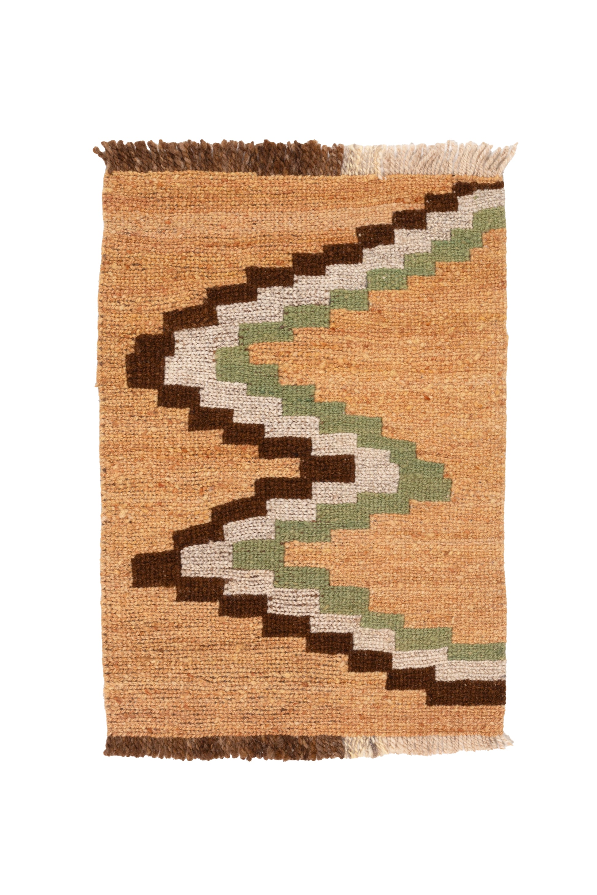 Parte de nuestra colección de mini alfombras Qom’, tejida con lana de oveja, delgada, super resistente y suave. Estos diseños autóctonos capturan la esencia de Pampa, donde la herencia artesanal Latinoamericana es una de nuestras grandes inspiraciones. Ideales para usar junto a la cama, en espacios pequeños o como tapices decorativos. Al ser teñida 100% a mano, se caracterizan por sus variaciones en el perfil de vetas, colores y diseños uniformes reflejan la hermosa naturaleza de su proceso artesanal y son lo que hacen que cada alfombra Pampa sea verdaderamente única.