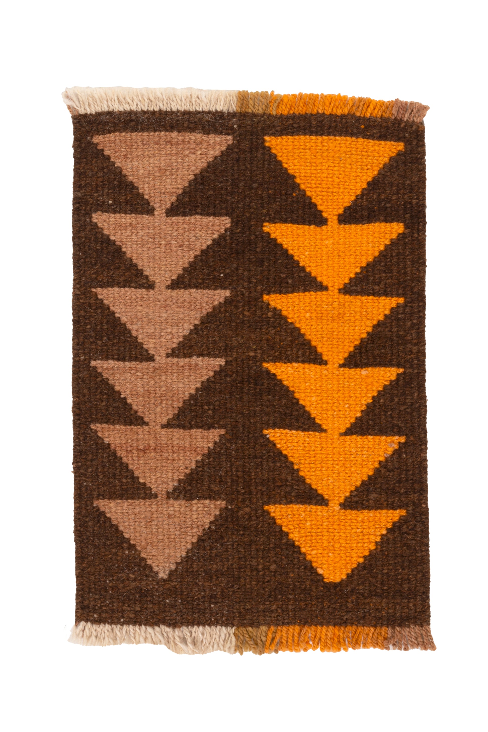 Parte de nuestra colección de mini alfombras Qom’, tejida con lana de oveja, delgada, super resistente y suave. Estos diseños autóctonos capturan la esencia de Pampa, donde la herencia artesanal Latinoamericana es una de nuestras grandes inspiraciones. Ideales para usar junto a la cama, en espacios pequeños o como tapices decorativos. Al ser teñida 100% a mano, se caracterizan por sus variaciones en el perfil de vetas, colores y diseños uniformes reflejan la hermosa naturaleza de su proceso artesanal y son lo que hacen que cada alfombra Pampa sea verdaderamente única.