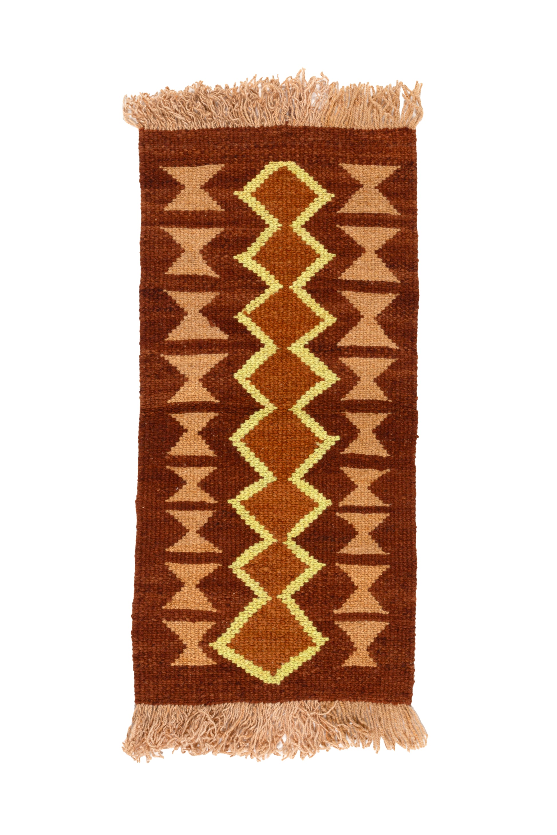 Parte de nuestra colección de mini alfombras Qom’, tejida con lana de oveja, delgada, super resistente y suave. Estos diseños autóctonos capturan la esencia de Pampa, donde la herencia artesanal Latinoamericana es una de nuestras grandes inspiraciones. Ideales para usar junto a la cama, en espacios pequeños o como tapices decorativos. Al ser teñida 100% a mano, se caracterizan por sus variaciones en el perfil de vetas, colores y diseños uniformes reflejan la hermosa naturaleza de su proceso artesanal y son lo que hacen que cada alfombra Pampa sea verdaderamente única.