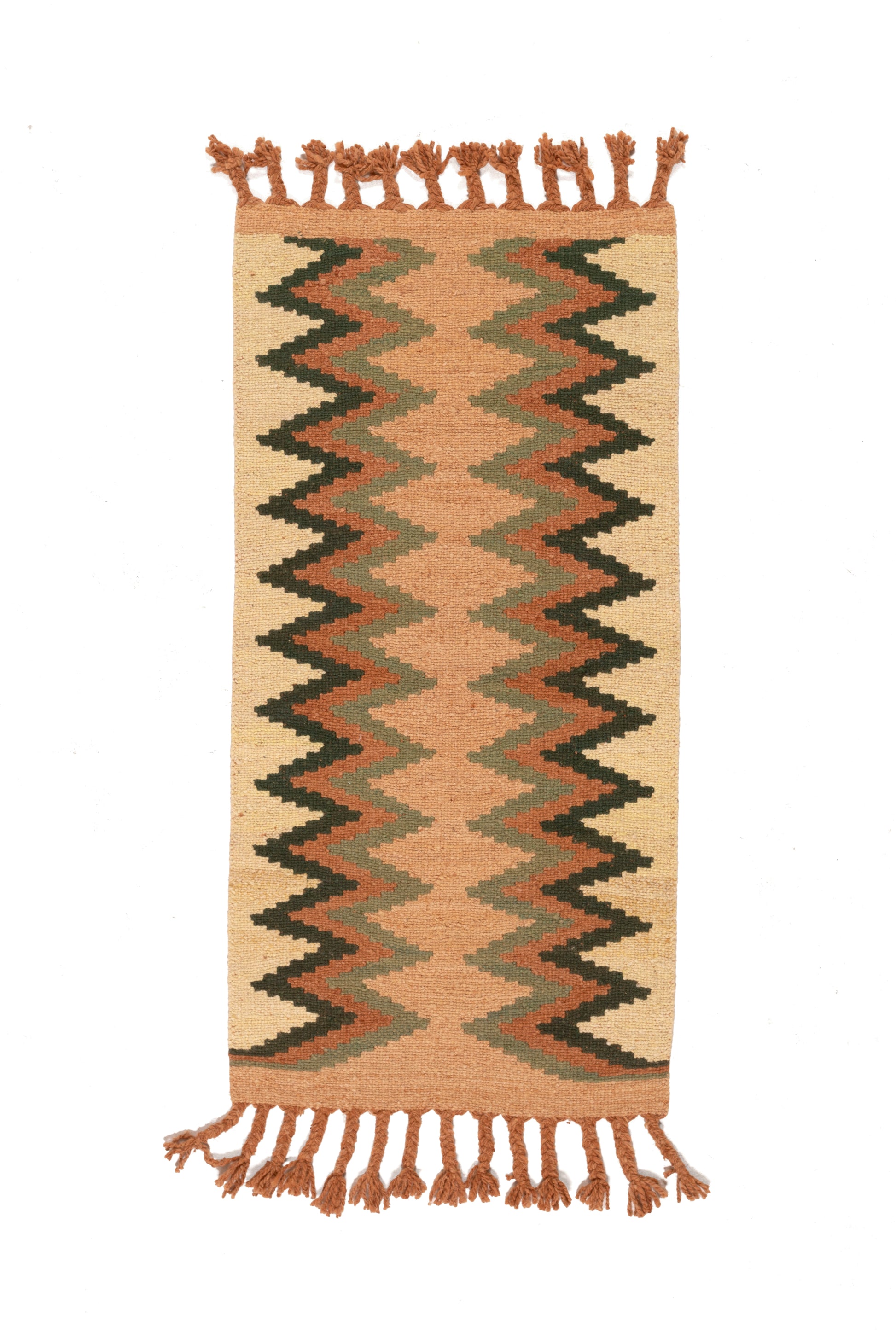 Parte de nuestra colección de mini alfombras Qom’, tejida con lana de oveja, delgada, super resistente y suave. Estos diseños autóctonos capturan la esencia de Pampa, donde la herencia artesanal Latinoamericana es una de nuestras grandes inspiraciones. Ideales para usar junto a la cama, en espacios pequeños o como tapices decorativos. Al ser teñida 100% a mano, se caracterizan por sus variaciones en el perfil de vetas, colores y diseños uniformes reflejan la hermosa naturaleza de su proceso artesanal y son lo que hacen que cada alfombra Pampa sea verdaderamente única.