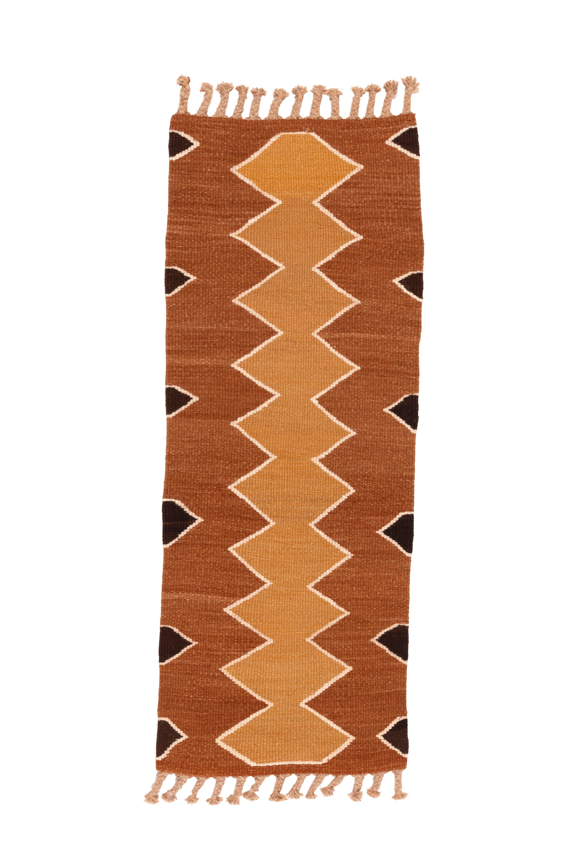 Parte de nuestra colección de mini alfombras Qom’, tejida con lana de oveja, delgada, super resistente y suave. Estos diseños autóctonos capturan la esencia de Pampa, donde la herencia artesanal Latinoamericana es una de nuestras grandes inspiraciones. Ideales para usar junto a la cama, en espacios pequeños o como tapices decorativos. Al ser teñida 100% a mano, se caracterizan por sus variaciones en el perfil de vetas, colores y diseños uniformes reflejan la hermosa naturaleza de su proceso artesanal y son lo que hacen que cada alfombra Pampa sea verdaderamente única.