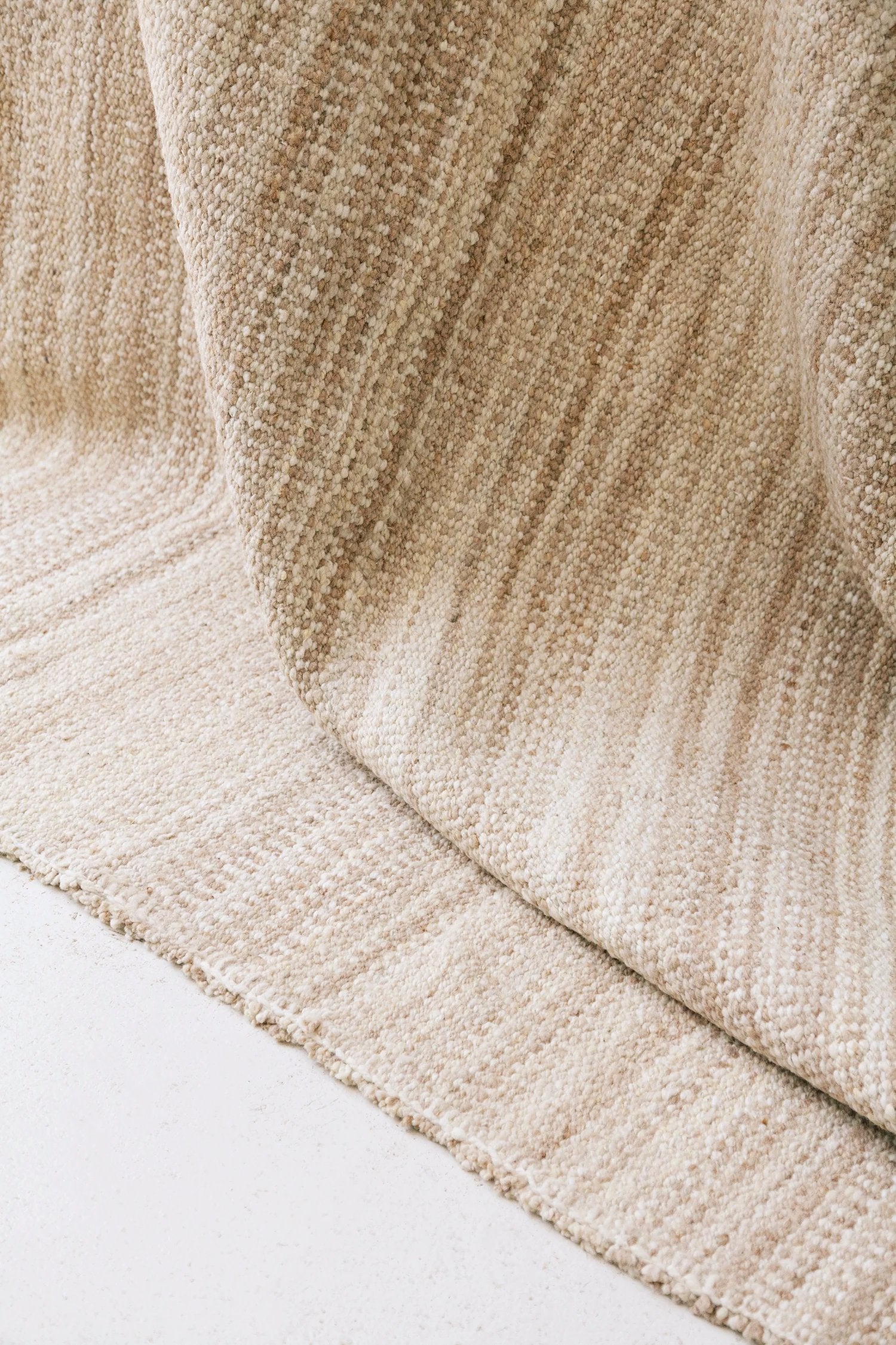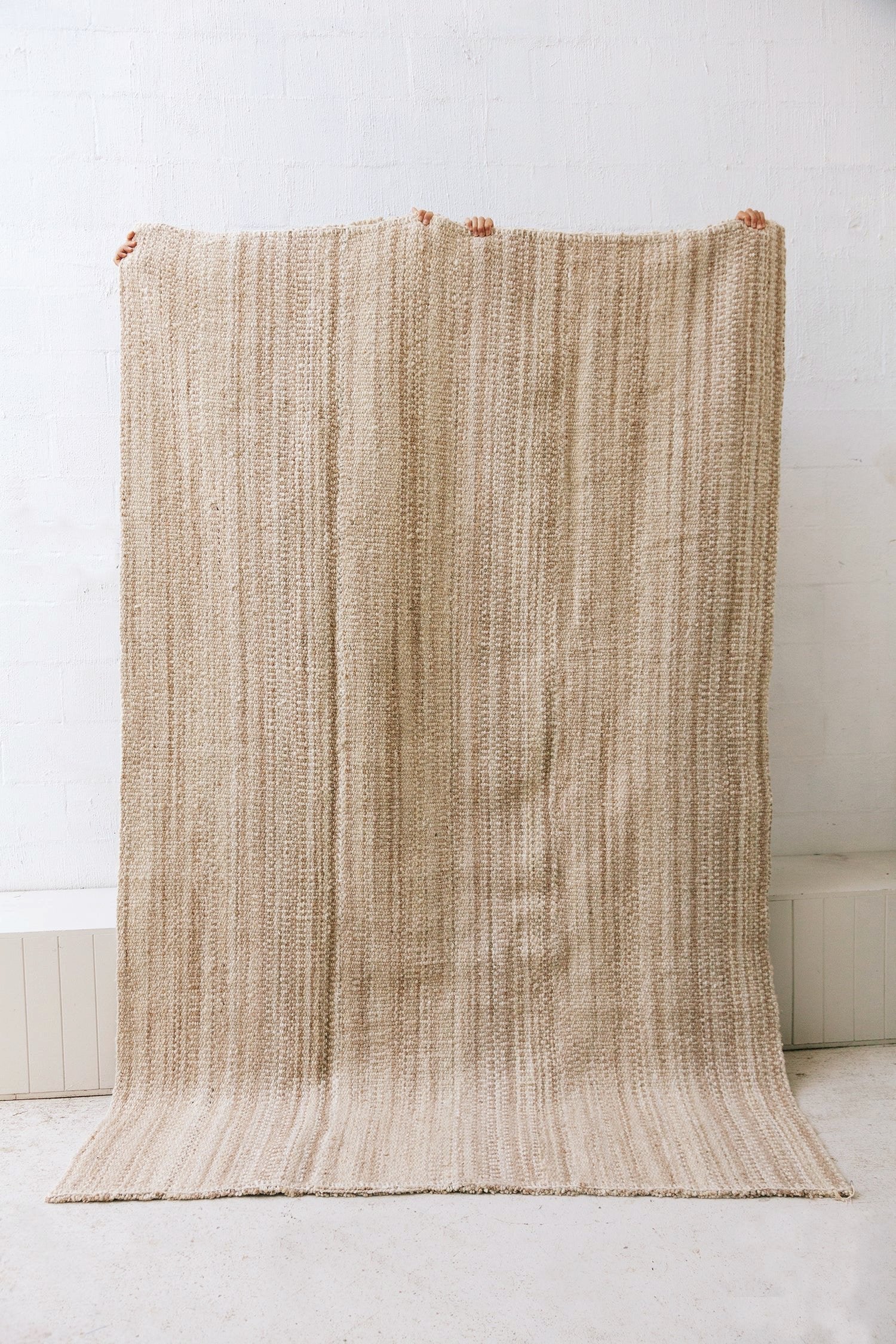 Todas las alfombras de Pampa están tejidas con fibras naturales finas y de alta calidad, y cada paso del proceso se realiza a mano, lo que hace que cada pieza sea única.Nuestras alfombras se tejen siguiendo técnicas tradicionales ancestrales, donde los telares suelen tener el ancho aproximado de los brazos extendidos del tejedor, dependiendo de esa medida, la alfombra puede tener una o más uniones discretas donde se ensamblan los paños. Estas uniones son un detalle bello y característico del trabajo hecho a mano.