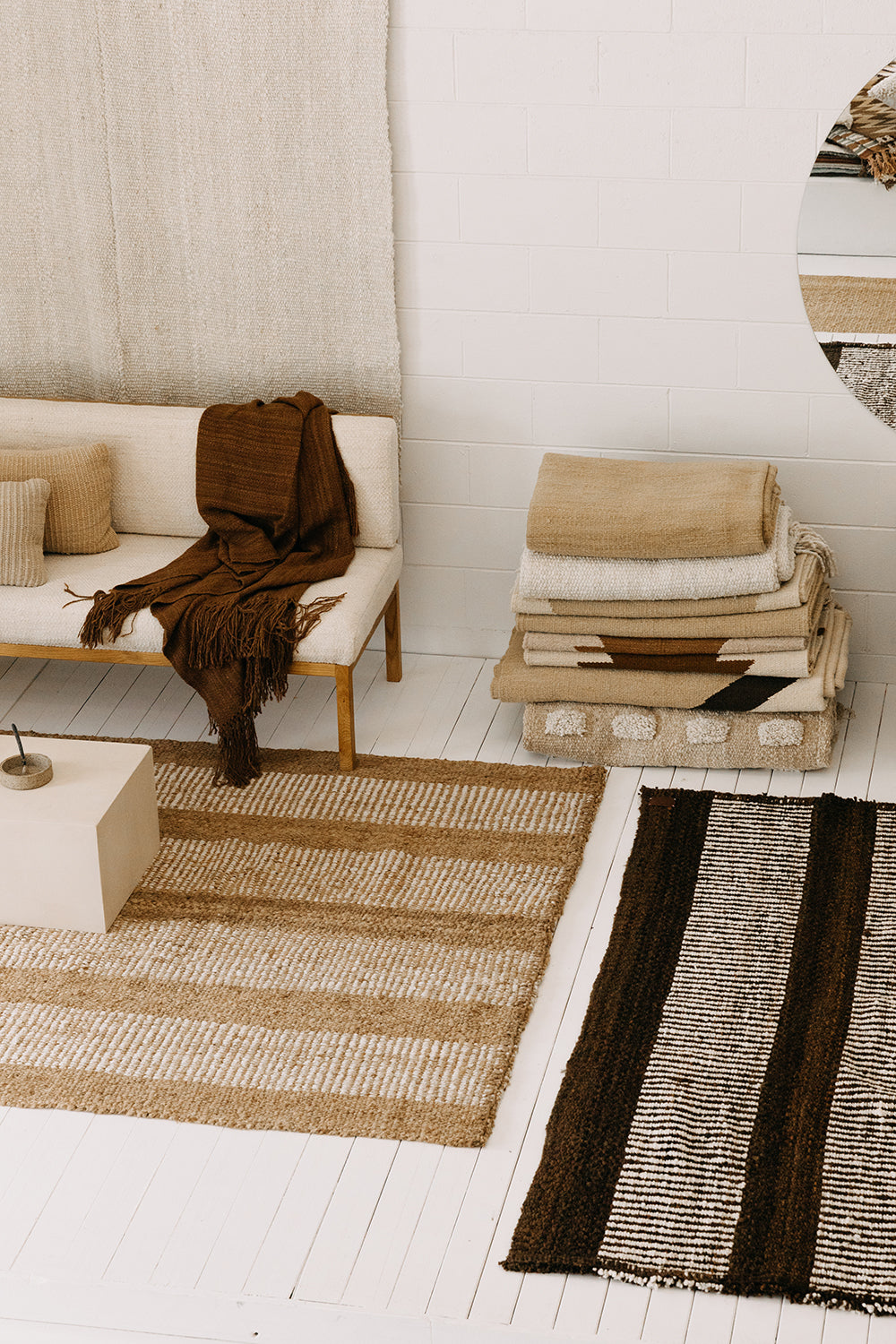 Nuestras alfombras, tejidas con fibras naturales, están hechas para resistir el paso del tiempo sin necesidad de materiales sintéticos.