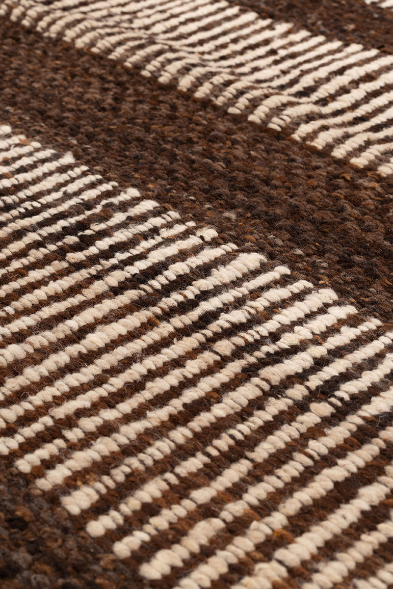 Parte de nuestra colección de alfombras lineares, tejida con lana de oveja, bien mullida suave, lujosa al tacto, son diseños minimalistas, contemporáneos y atemporales, aportan profundidad y carácter a los espacios simples. Al ser 100% lana virgen —sin teñir— esta alfombra resalta la belleza de la fibra en su estado puro y su textura natural.