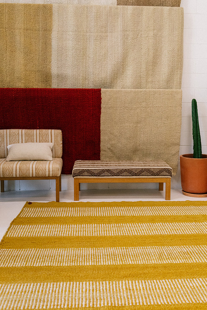 Parte de nuestra colección de alfombras lineares, tejida con lana de oveja, bien mullida suave, lujosa al tacto, son diseños minimalistas, contemporáneos y atemporales, aportan profundidad y carácter a los espacios simples. Al ser teñida 100% a mano, se caracterizan por sus variaciones en el perfil de vetas, colores y diseños uniformes reflejan la hermosa naturaleza de su proceso artesanal y son lo que hacen que cada alfombra Pampa sea verdaderamente única.