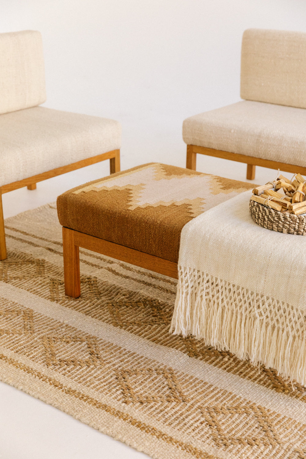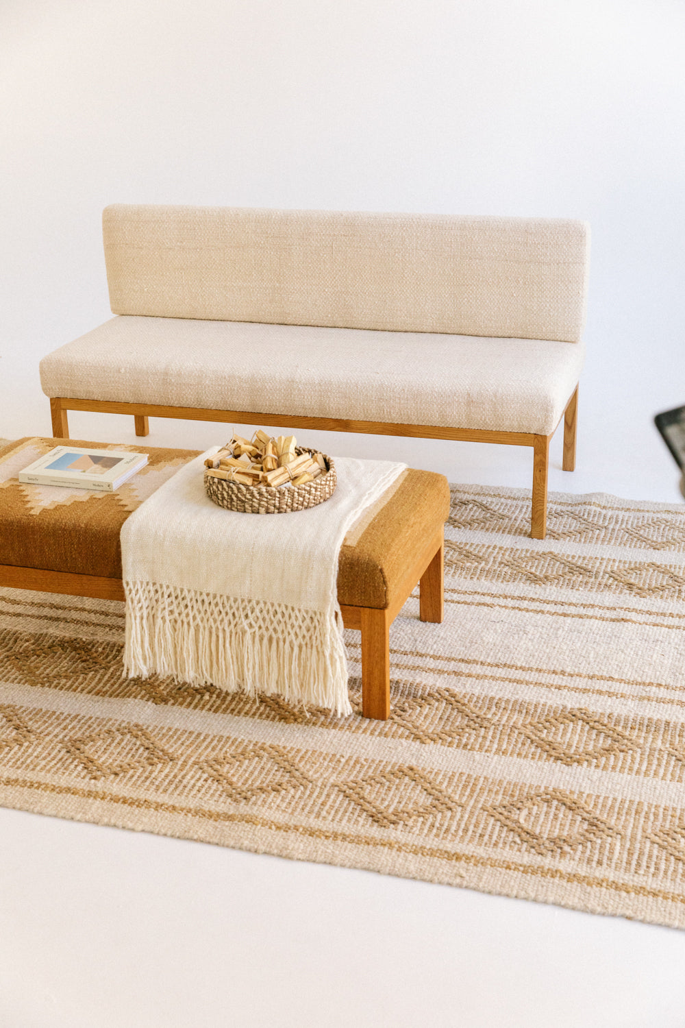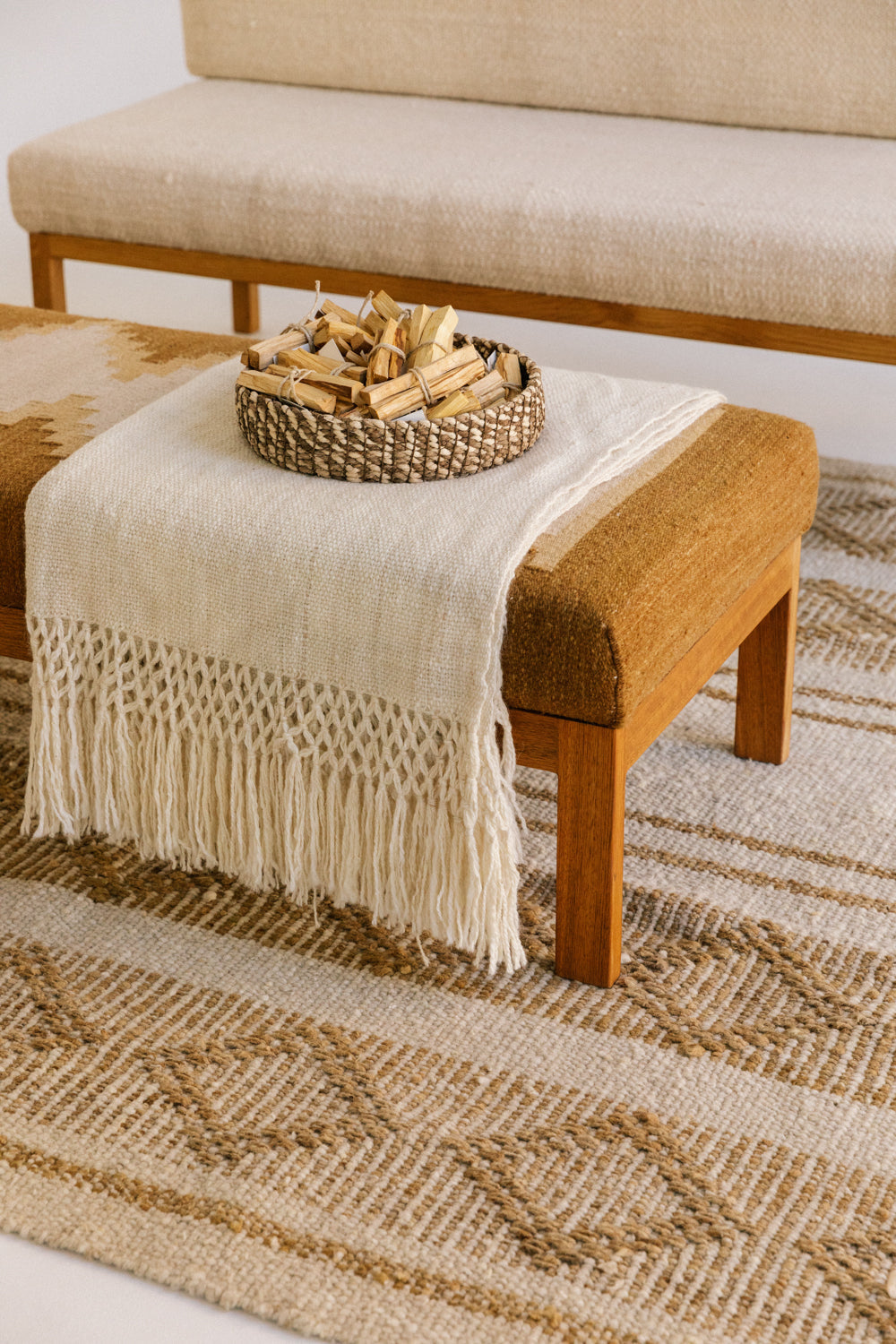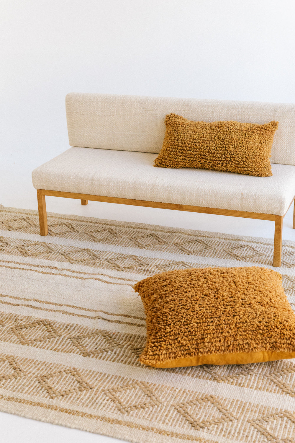 Todas las alfombras de Pampa están tejidas con fibras naturales finas y de alta calidad, y cada paso del proceso se realiza a mano, lo que hace que cada pieza sea única.Nuestras alfombras se tejen siguiendo técnicas tradicionales ancestrales, donde los telares suelen tener el ancho aproximado de los brazos extendidos del tejedor, dependiendo de esa medida, la alfombra puede tener una o más uniones discretas donde se ensamblan los paños. Estas uniones son un detalle bello y característico del trabajo hecho a mano.