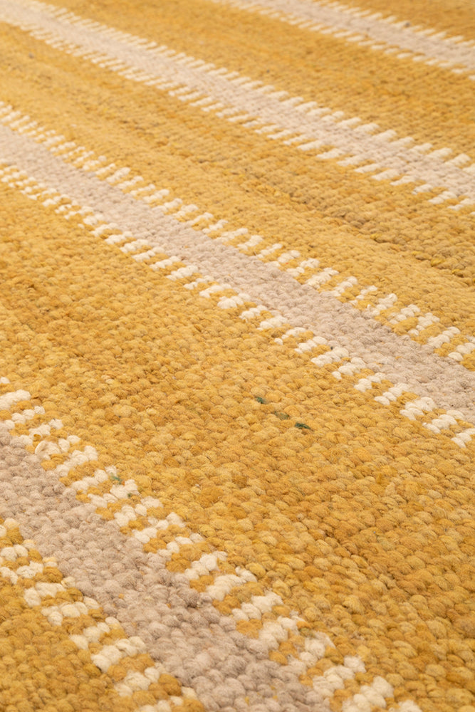 Todas las alfombras de Pampa están tejidas con fibras naturales finas y de alta calidad, y cada paso del proceso se realiza a mano, lo que hace que cada pieza sea única.Nuestras alfombras se tejen siguiendo técnicas tradicionales ancestrales, donde los telares suelen tener el ancho aproximado de los brazos extendidos del tejedor, dependiendo de esa medida, la alfombra puede tener una o más uniones discretas donde se ensamblan los paños. Estas uniones son un detalle bello y característico del trabajo hecho a mano.