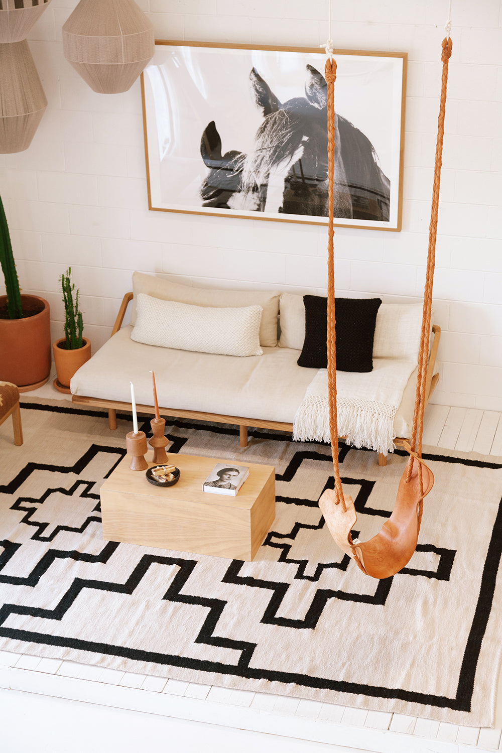 • Usá una base antideslizante para mantener la alfombra extendida, evitar deslizamientos, proteger el piso y prevenir que la lana se aplaste con el tiempo. Recomendamos usar una base antideslizante sobre cualquier tipo de superficie.